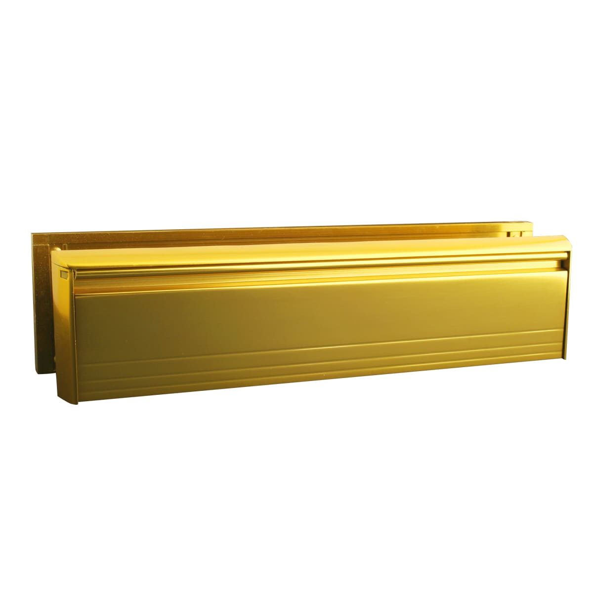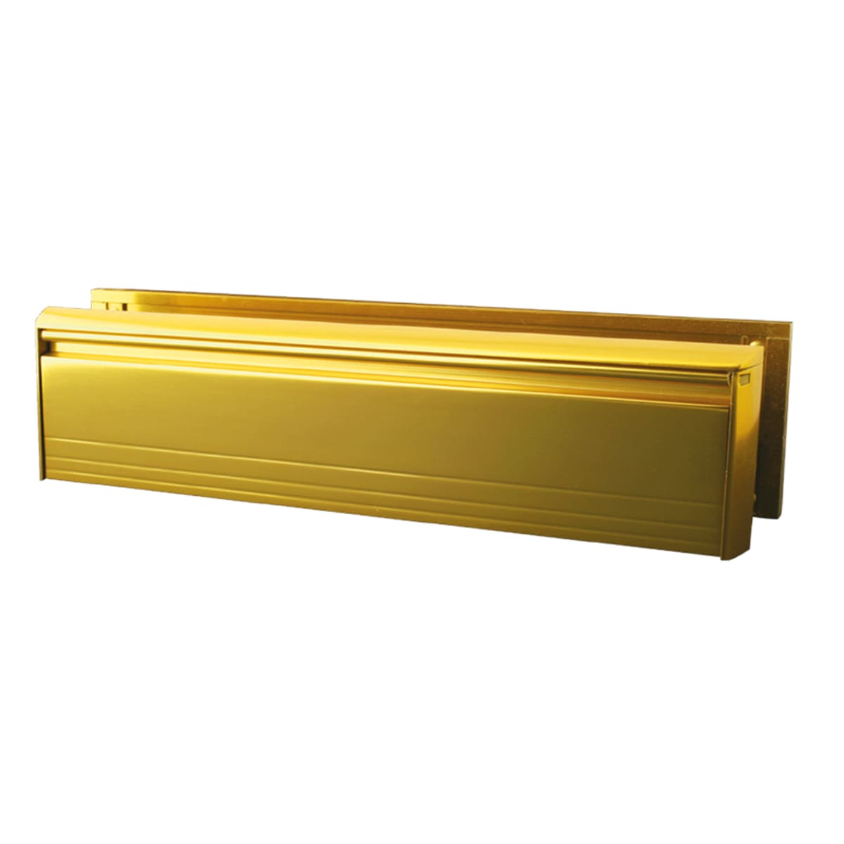 UAP gold anodised All Aluminium 12 inch letterplate. Has many features not found on standard letterboxes, such as the trademarked Anti-Vandal facility. Each UAP Anti-Vandal letterplate has outward facing draught-excluding brushes which discourage vandals from placing unwanted items into the cavity whilst allowing easy access for post.