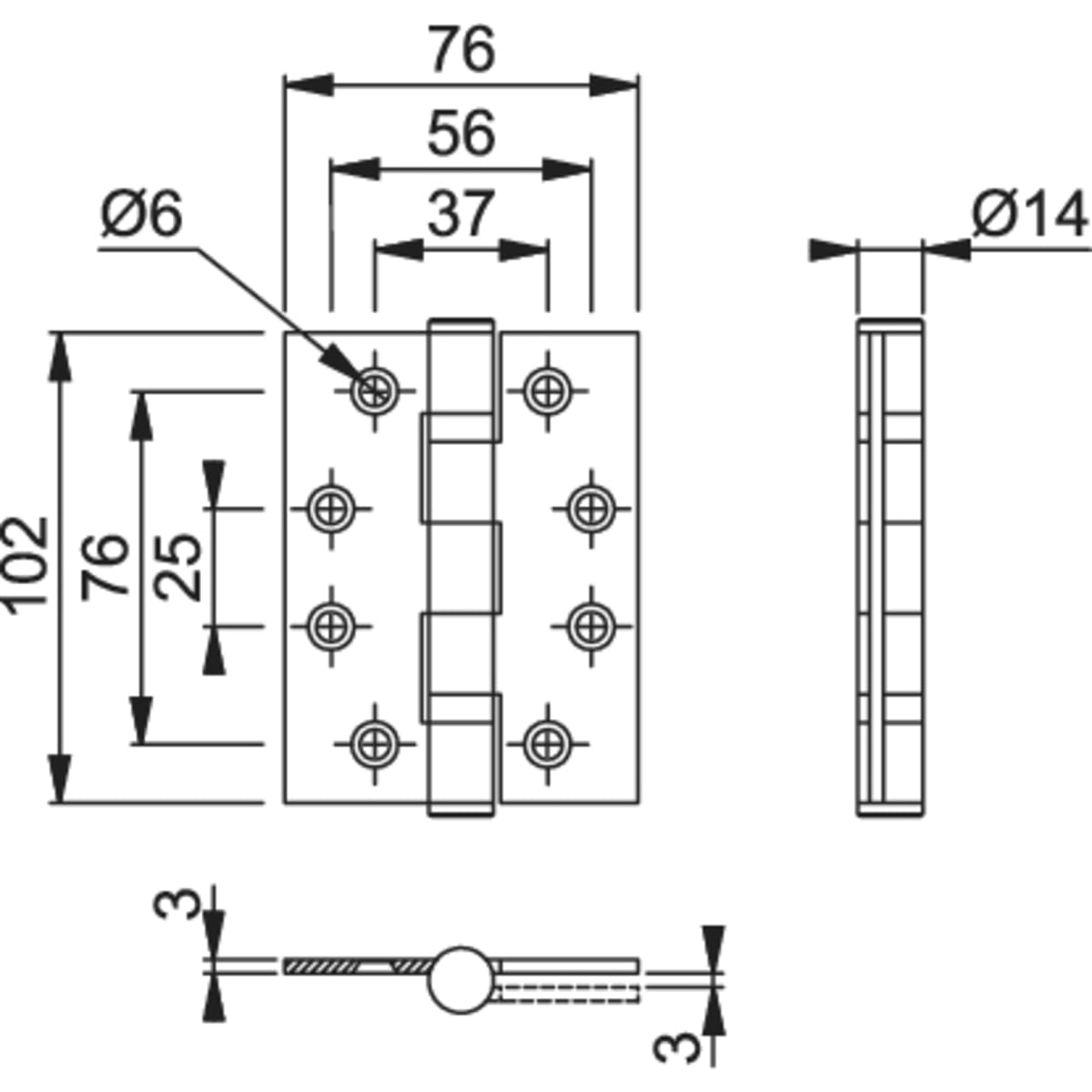 Product Name ARRONE Ball Bearing Butt Hinge 102 x 75 x 3mm Stainless Steel AR8180-SSS