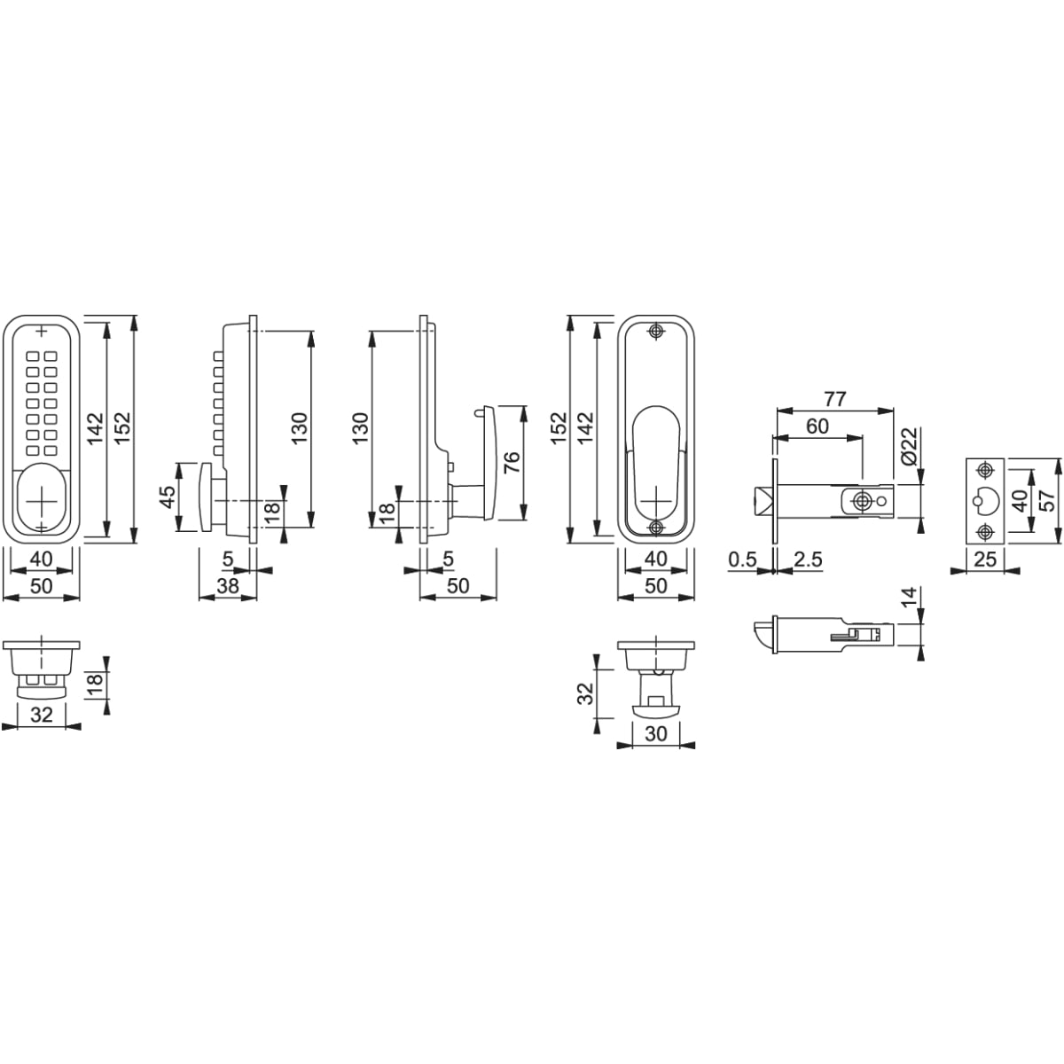 Arrone Digital Lock 50 x 142 x 35mm (H x L x W) Chrome is manufactured from zinc and has an oval or hexagonal turn function. The lock has a 14-digit pin tumbler system. It is provided with a dual function holdback facility that is on or off. The digital lock is suitable for internal use with deadlock tubular latch that has a backset measurement of 60mm. Also suitable for use on timber or metal doors with a thickness of 33mm to 55mm. The product is assessed for use on 30 to 60 minute timber fire doors.