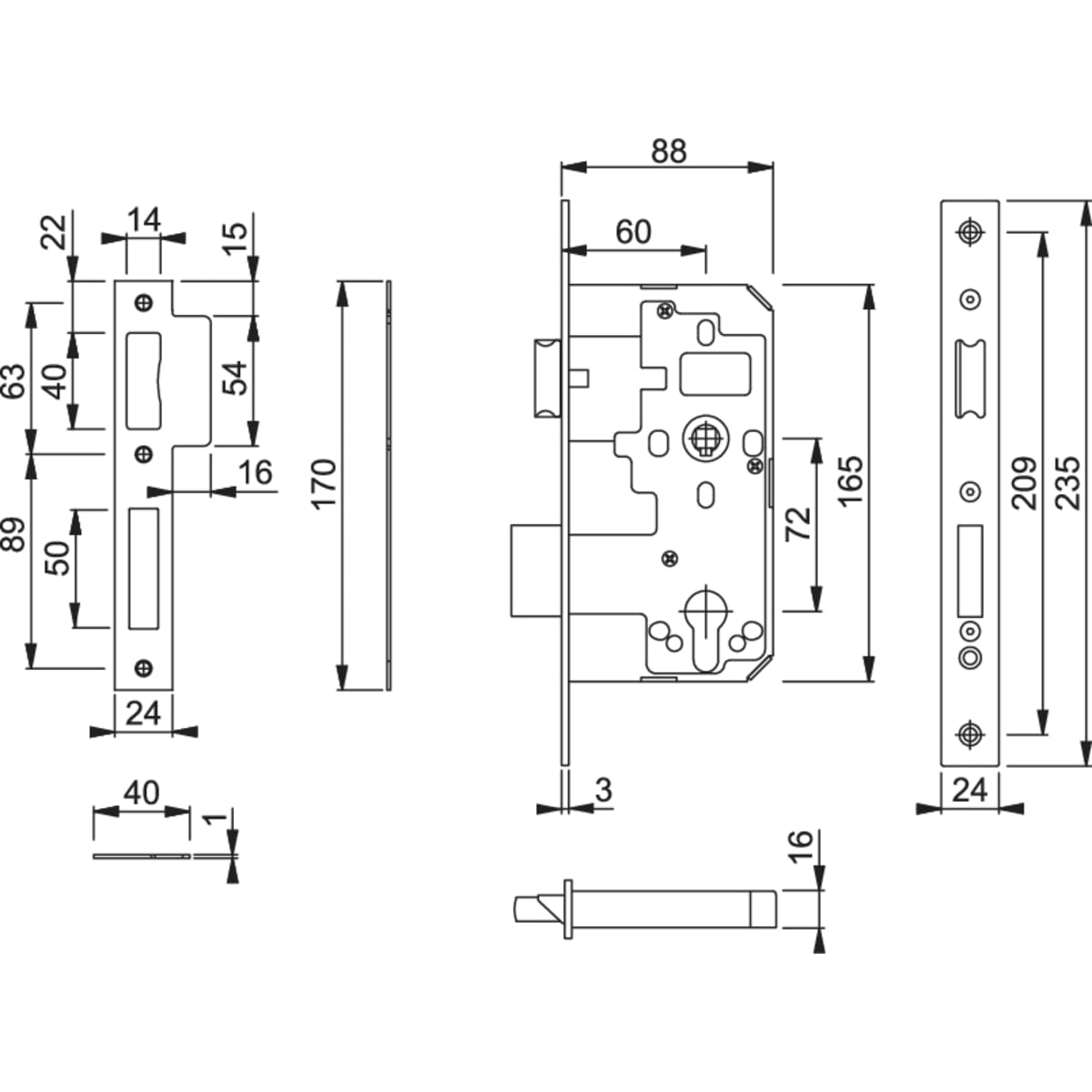 Product Name Arrone Euro Profile Double Throw Mortice Sashlock Case 60mm AR910-S-60-SSS