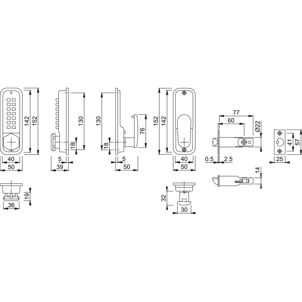 Arrone Mechanical Push Button Lock Matt Chrome features 14 digit pin tumbler system and is suitable for metal or timber doors with a thickness ranging from 33-55mm. A 60mm with deadlocking latch is also supplied.