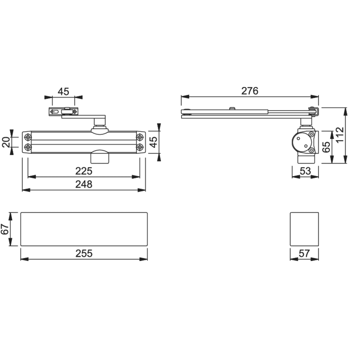 ARRONE Overhead Door Closer Silver is manufactured from aluminium. It is mainly fixed on top of the emergency doors. Functions with the help of adjustable spring tension which helps in closing or opening of the door. Featured with adjustable arms that aids in automatic closure of the door. It is suitable for door that measures 1100mm in width.
