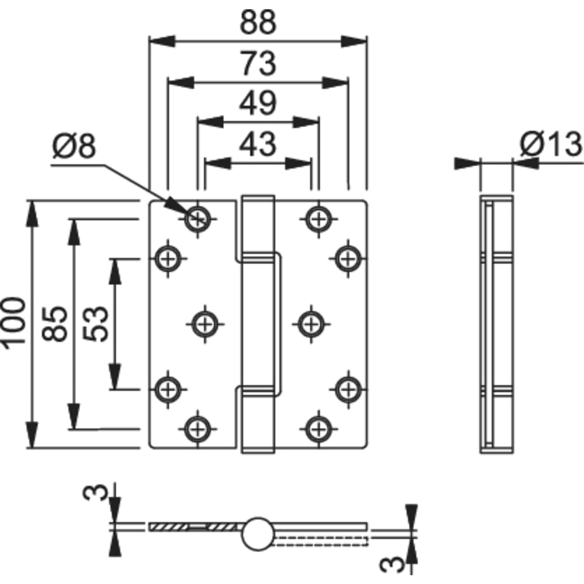 IDH5011698 Hinges, Seals & Intumescent > Hinges > Butt Hinges > ARRONE Phosphor Bronze Corner Butt Hinge Satin Stainless Steel