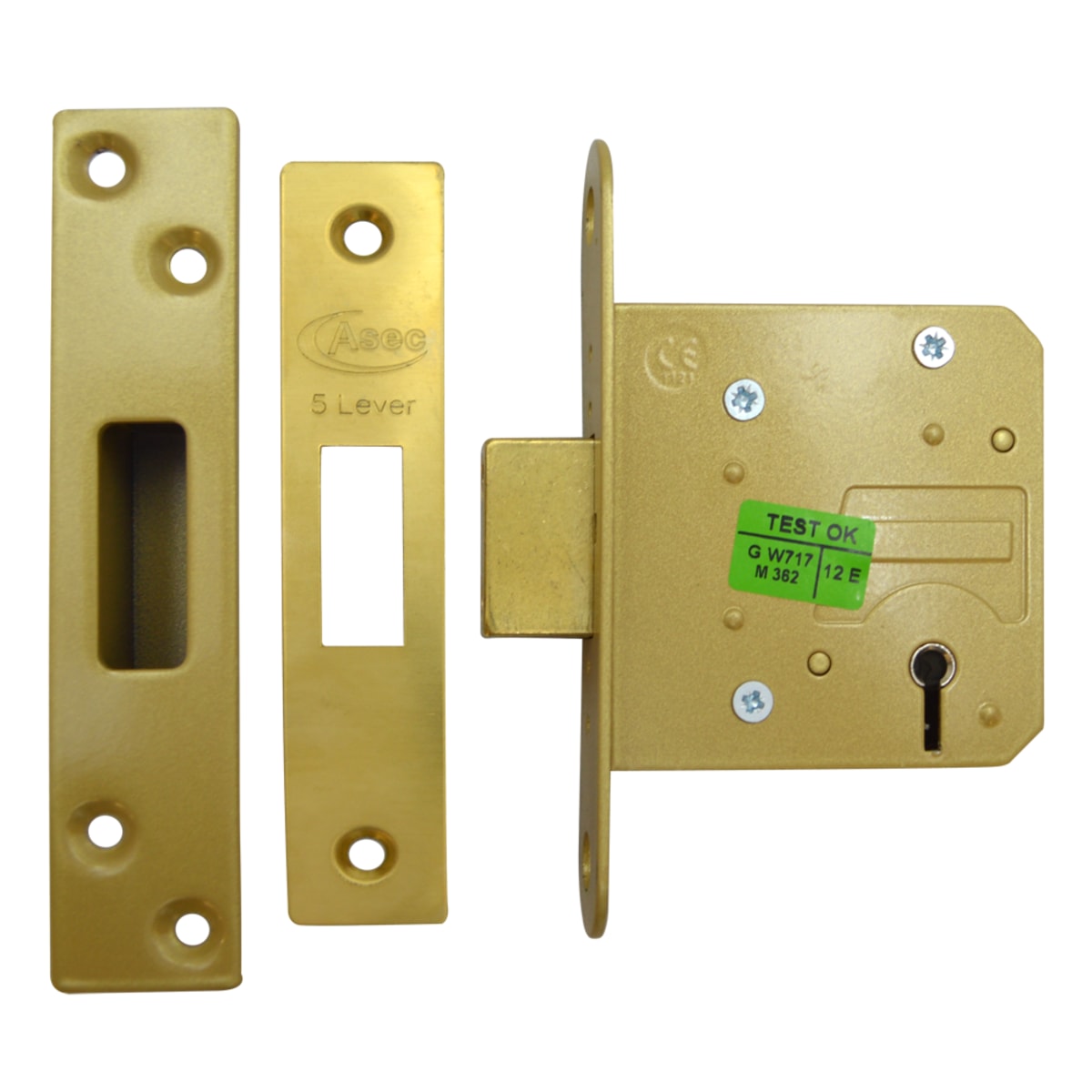 Locks & Security > Locks, Latches & Cylinders > Mortice Locks > ASEC 5 Lever Deadlock 64mm Polished Brass Keyed To Differ (Boxed)