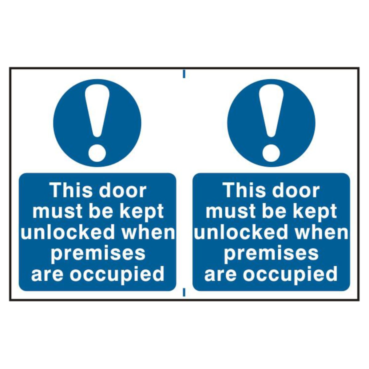 Tools, Equipment & Signage > Signage > Mandatory Signs (Blue) > ASEC `This Door Must Be Kept Unlocked When Premises Are Occupied` 200 x 300mm PVC Sign - 2 Per Sheet