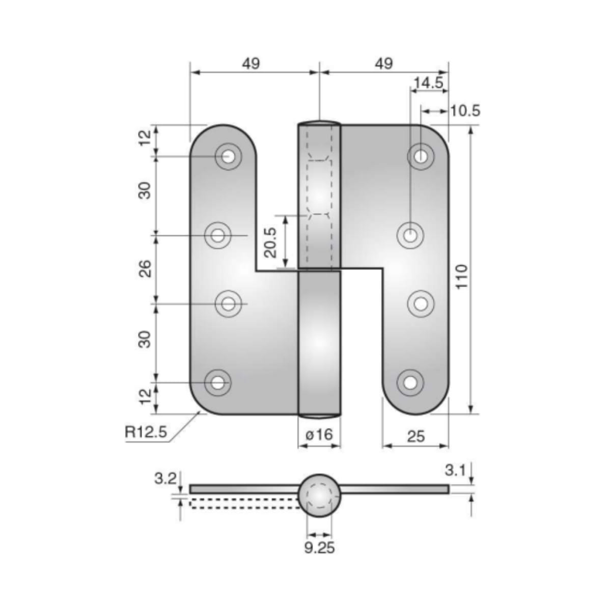 IDHWAF2710 Hinges, Seals & Intumescent > Hinges > Assa Hinges > Assa Abloy 3228 Grade-13 Left Hand Hinge 110mm Bright Zinc Plated