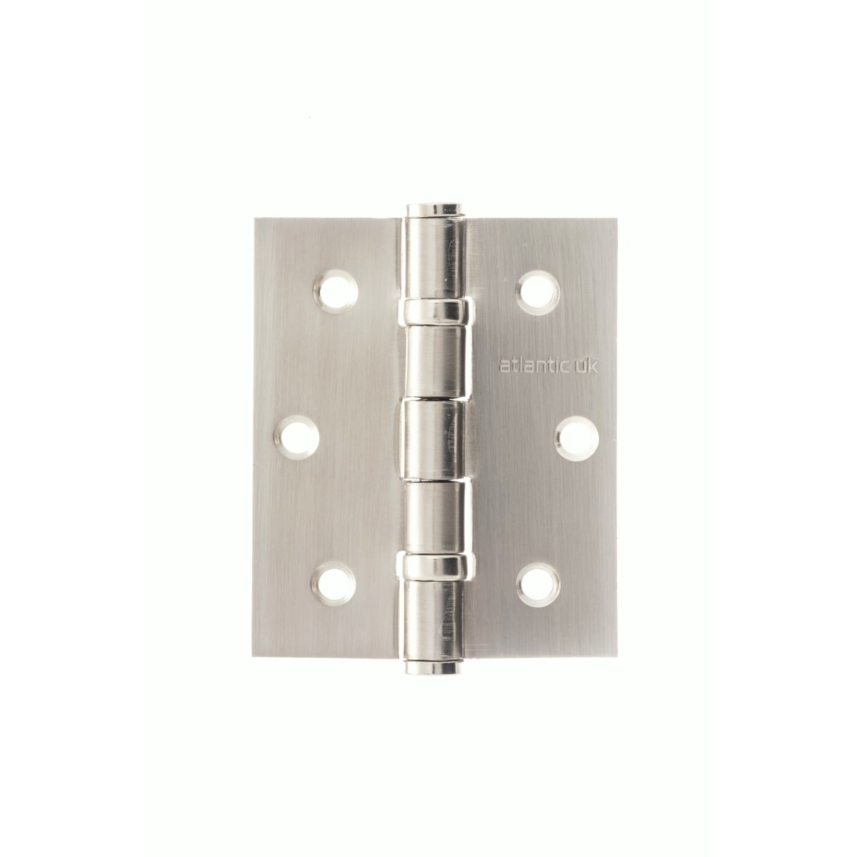 Atlantic Ball Bearing Hinge 76 x 63 x 3mm (3 x 2.5") Satin Nickel is equipped with ball bearings reducing friction, and the ball race casing is positioned between the hinge knuckles ensuring smooth operation. This product is part of the Atlantic complimentary suite of ironmongery to suit every taste.