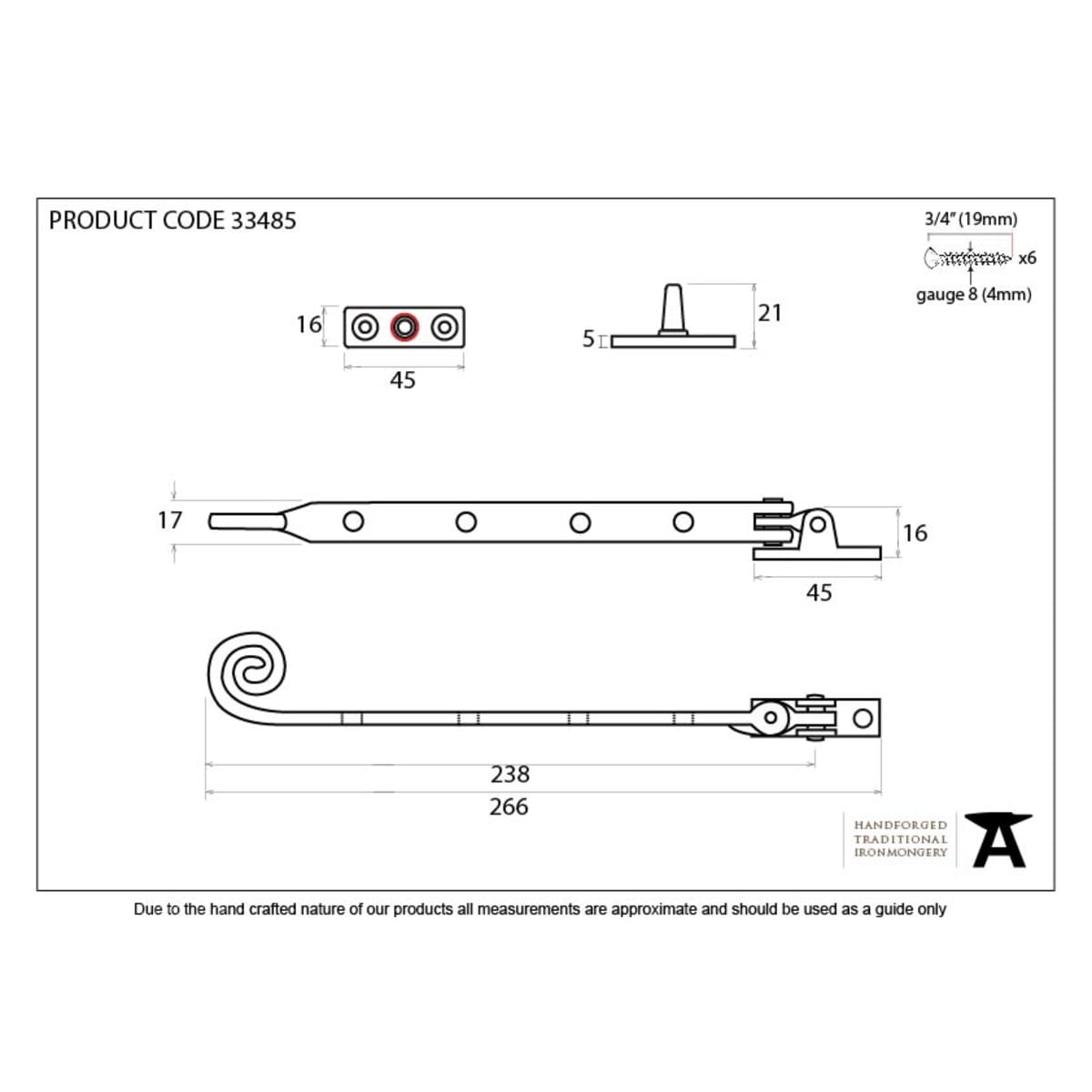 Ironmongery > Window Furniture > Casement Stays & Fasteners > From The Anvil Black 10" Cast Monkeytail Stay