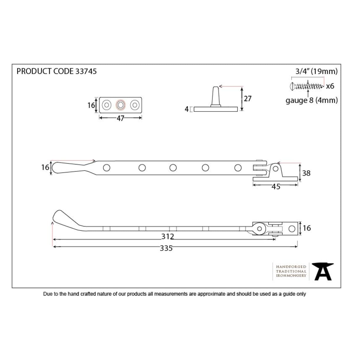 Our range of Peardrop stays feature a simplistic design combined with the benefits of a modern and secure configuration. Overall Length: 335mm Stay Arm: 312mm Fixing Plate: 45mm x 16mm
