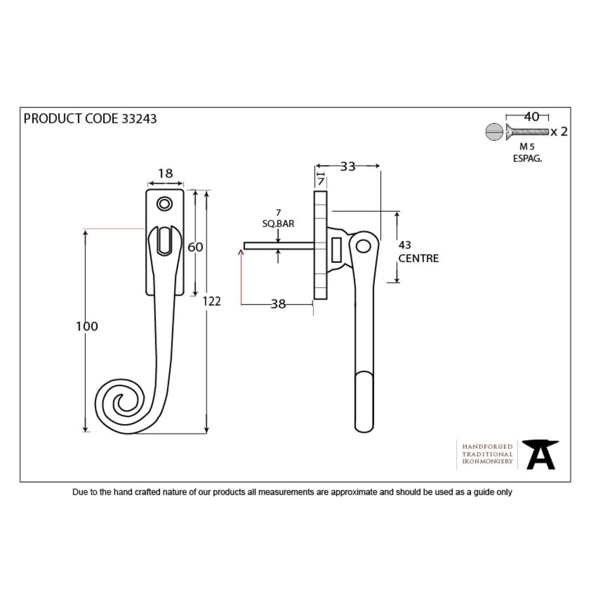 - Due to their slim fixing plates, our espagnolettes can be fitted on any type of window including uPVC and timber. Designed to match the products in our Monkeytail range.
