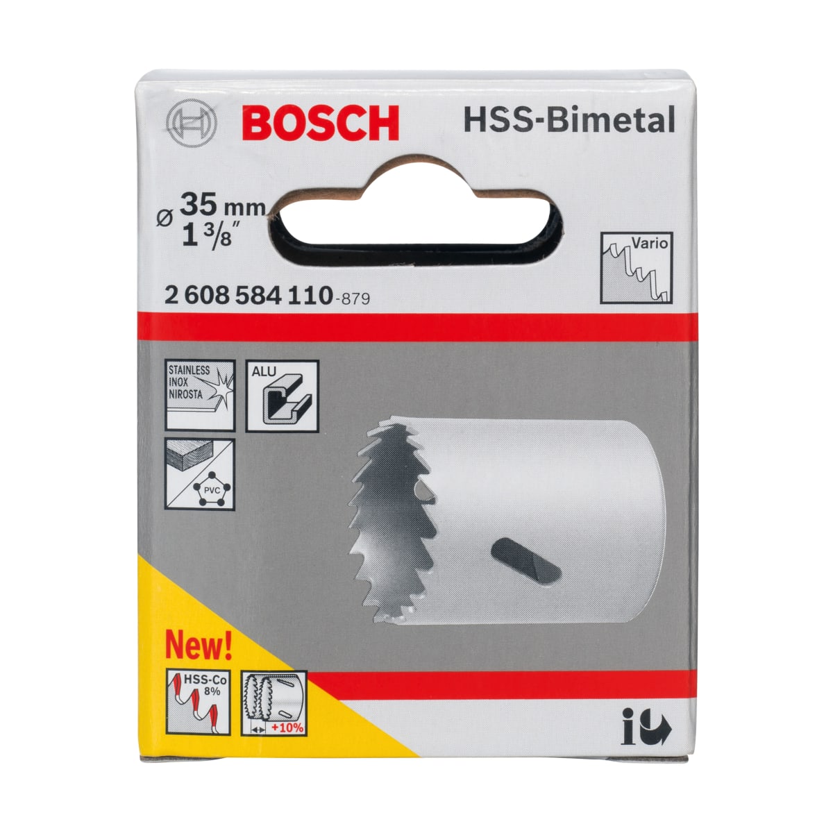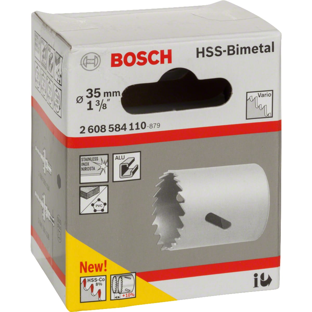 Bosch HSS Bi-Metal Hole Saw 35mm Dia is manufactured from high speed steel ensuring its strength. It is used for drilling steel, cast iron, structural steel, bronze, copper, PVC, alloyed and unalloyed aluminium. The tooth design results in precise and fast cutting.