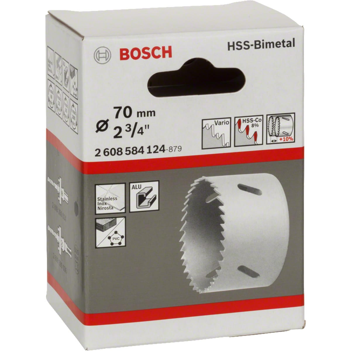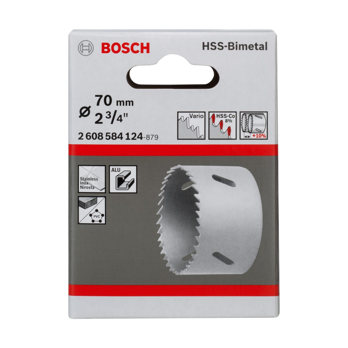Bosch HSS Bi-Metal Hole Saw 70mm Dia is manufactured from high speed steel ensuring its strength. It is used for drilling steel, cast iron, structural steel, bronze, copper, PVC, alloyed and unalloyed aluminium. The tooth design results in precise and fast cutting.