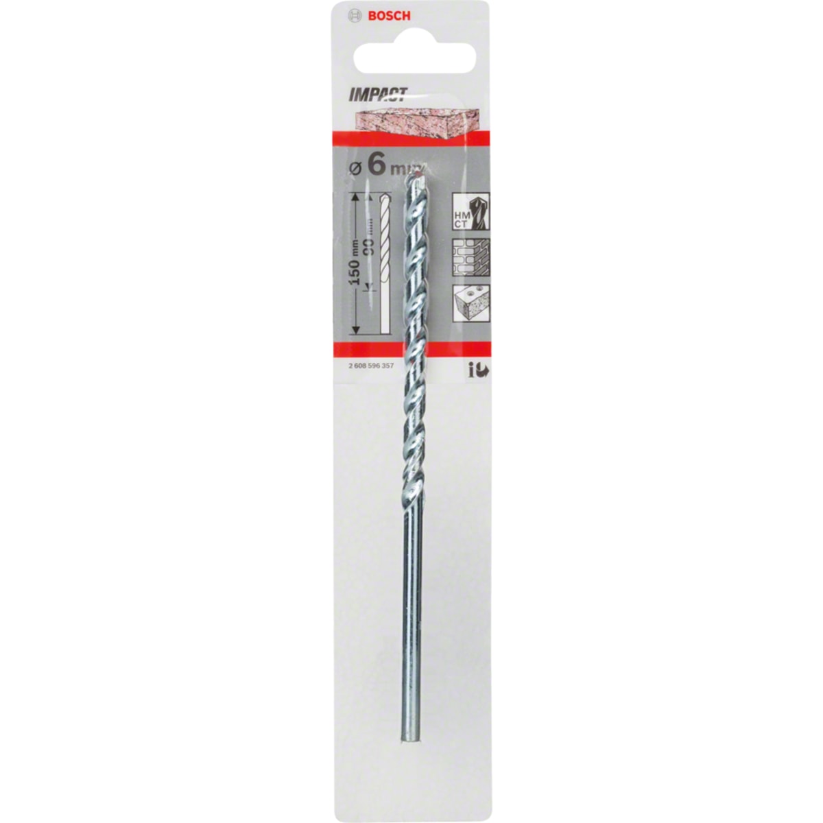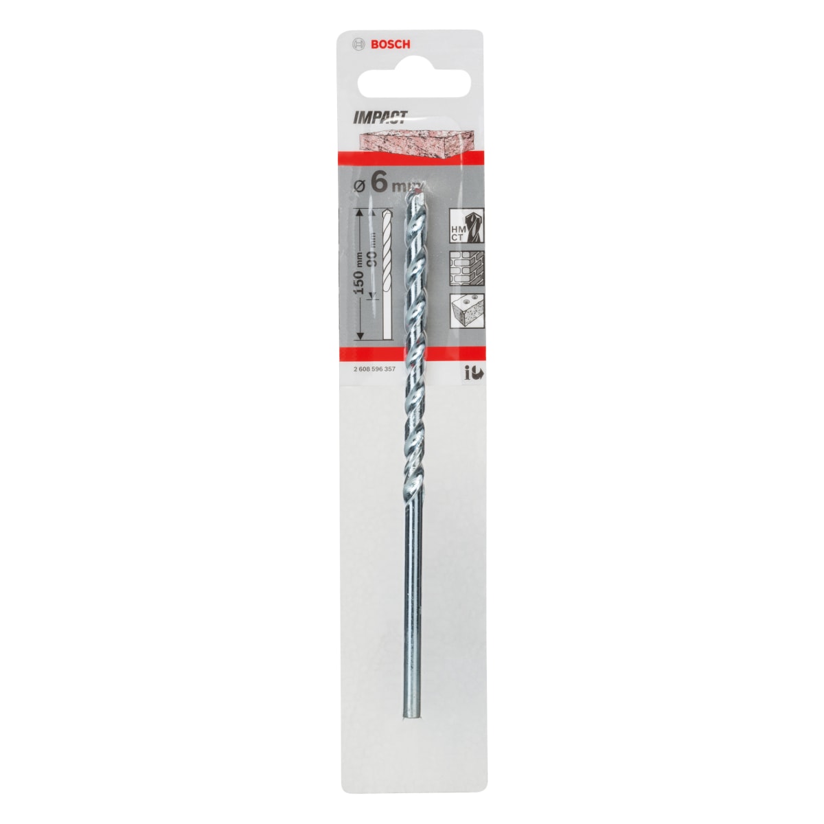 Bosch Impact Masonry Drill Bit 150 x 6mm (L x Dia) is made from tungsten carbide. It has spiral shape with semi-round profile for high stability and can be used in all impact drills. This product is suitable for masonry, sandstone, natural stone, artificial stone and concrete. Comprises of 5 units.