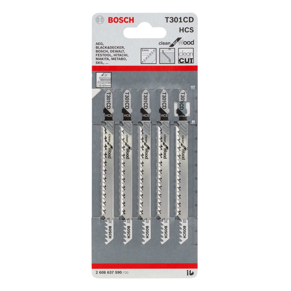 IDTM115742 Tools, Equipment & Signage > Power Tool Accessories > Cutting & Blades > Bosch Jigsaw Blades 117mm Length Pack of 5