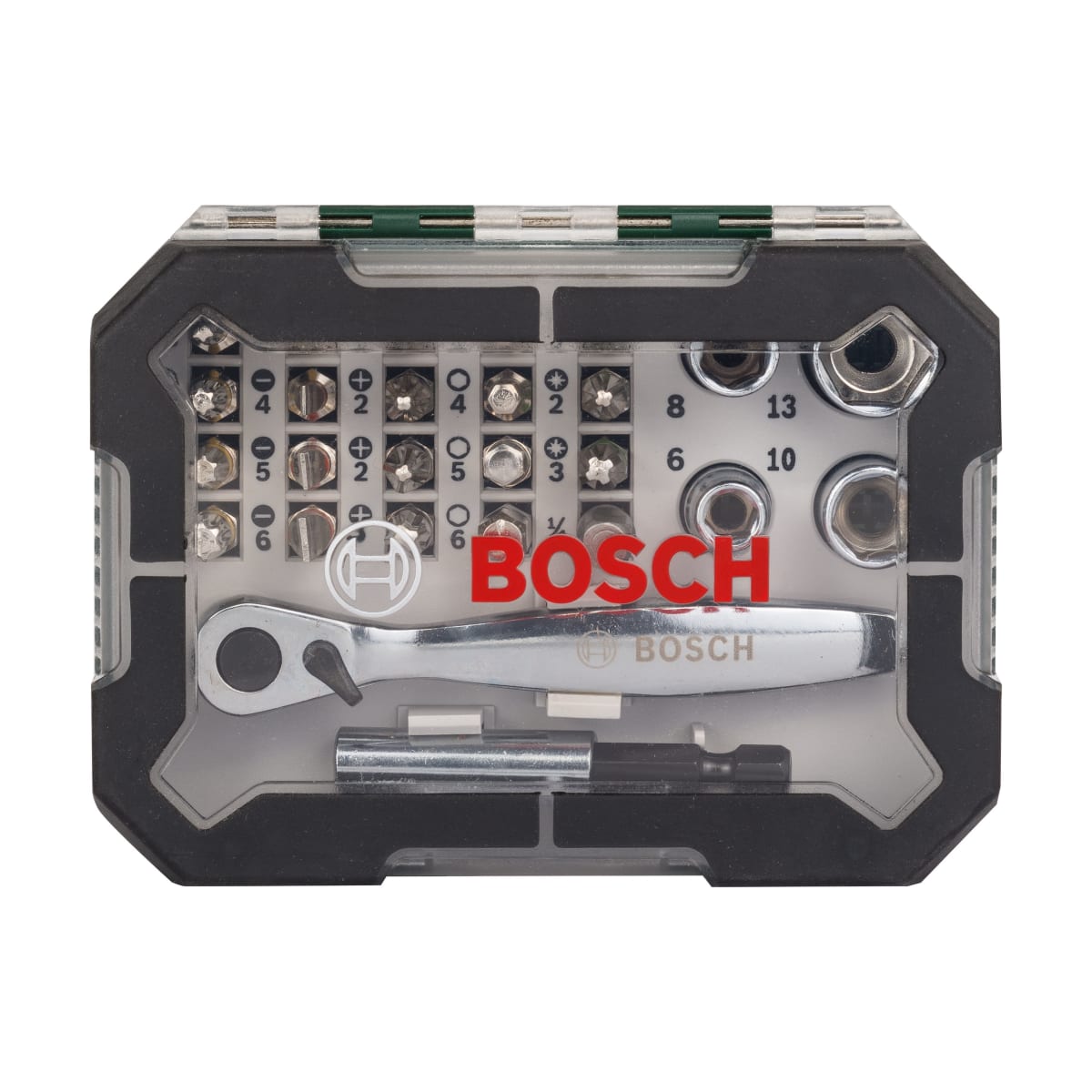 Product Name Bosch Screwdriver Bit and Ratchet Set 26 Piece Green