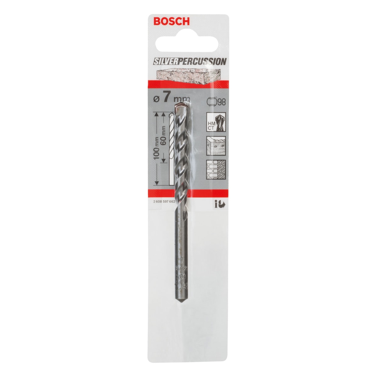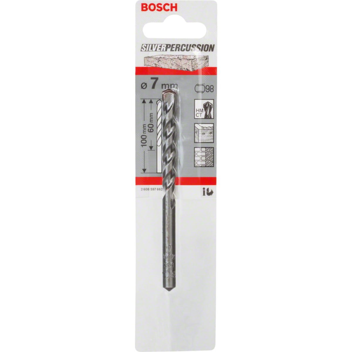 IDTABSP662 Tools, Equipment & Signage > Power Tool Accessories > Masonry Drilling > Bosch Silver Percussion Masonry Bit 7 x 60mm Chrome Plated
