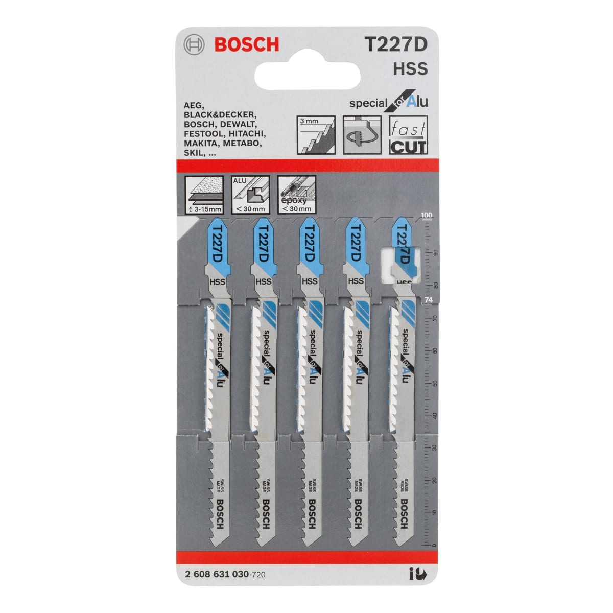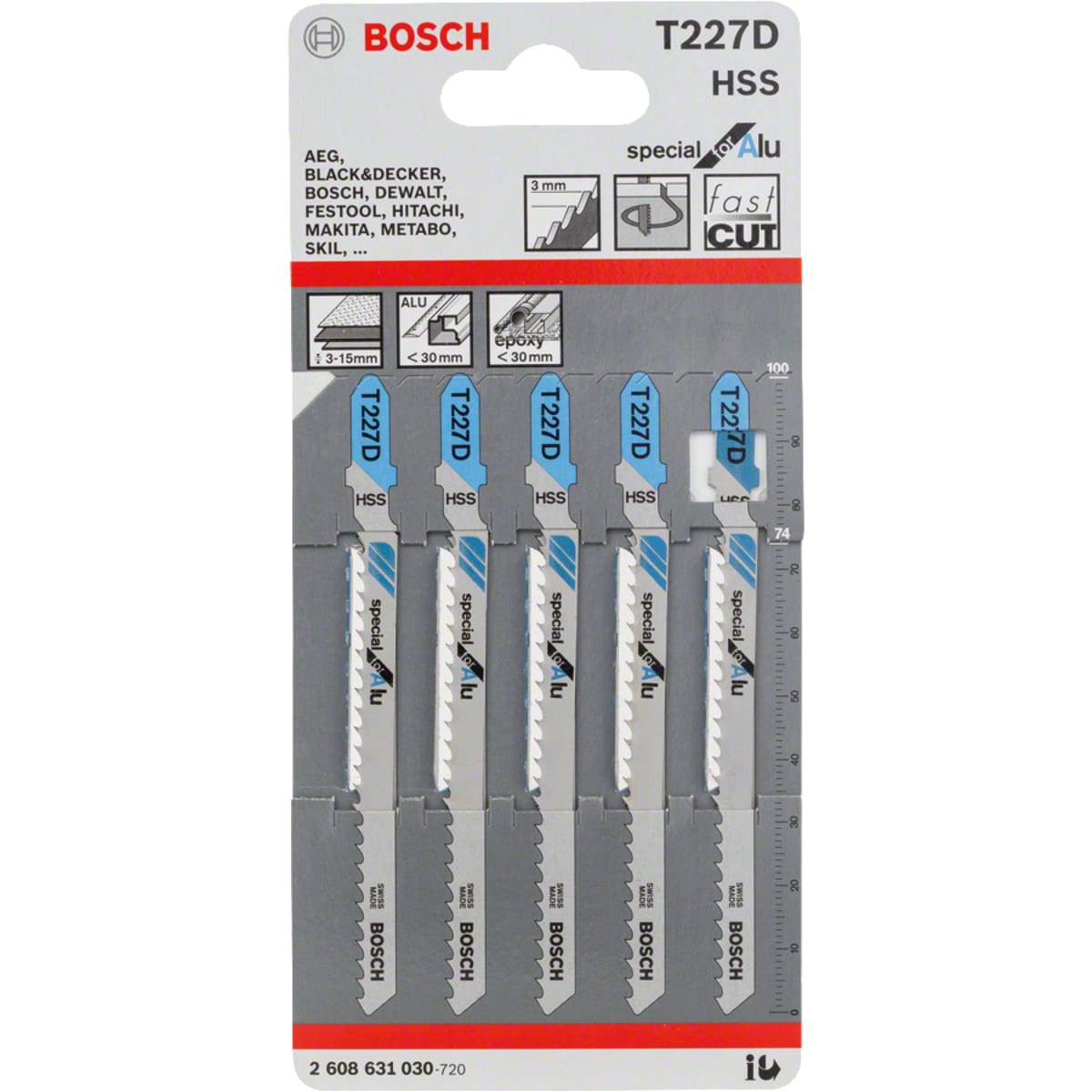 IDTM115682 Tools, Equipment & Signage > Power Tool Accessories > Cutting & Blades > Bosch T227D HSS Jigsaw Blades 100mm Length Blue Pack of 5