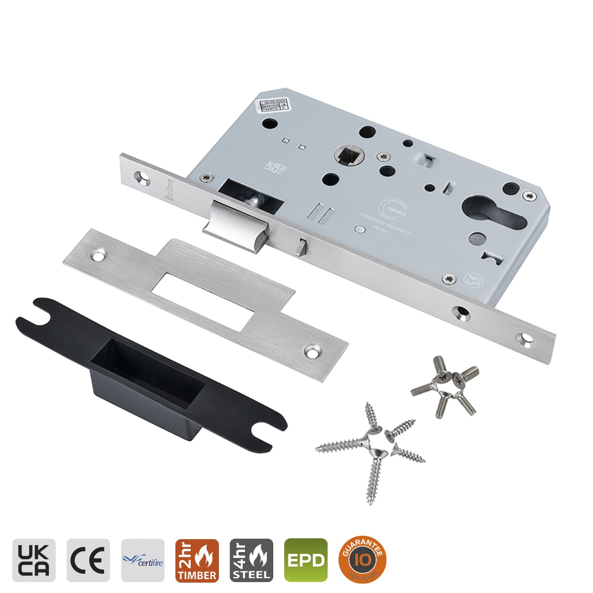 Product Name BRITON 5750.60.S.SS Euro Profile Cylinder Nightlatch - Square Forend Satin Stainless Steel