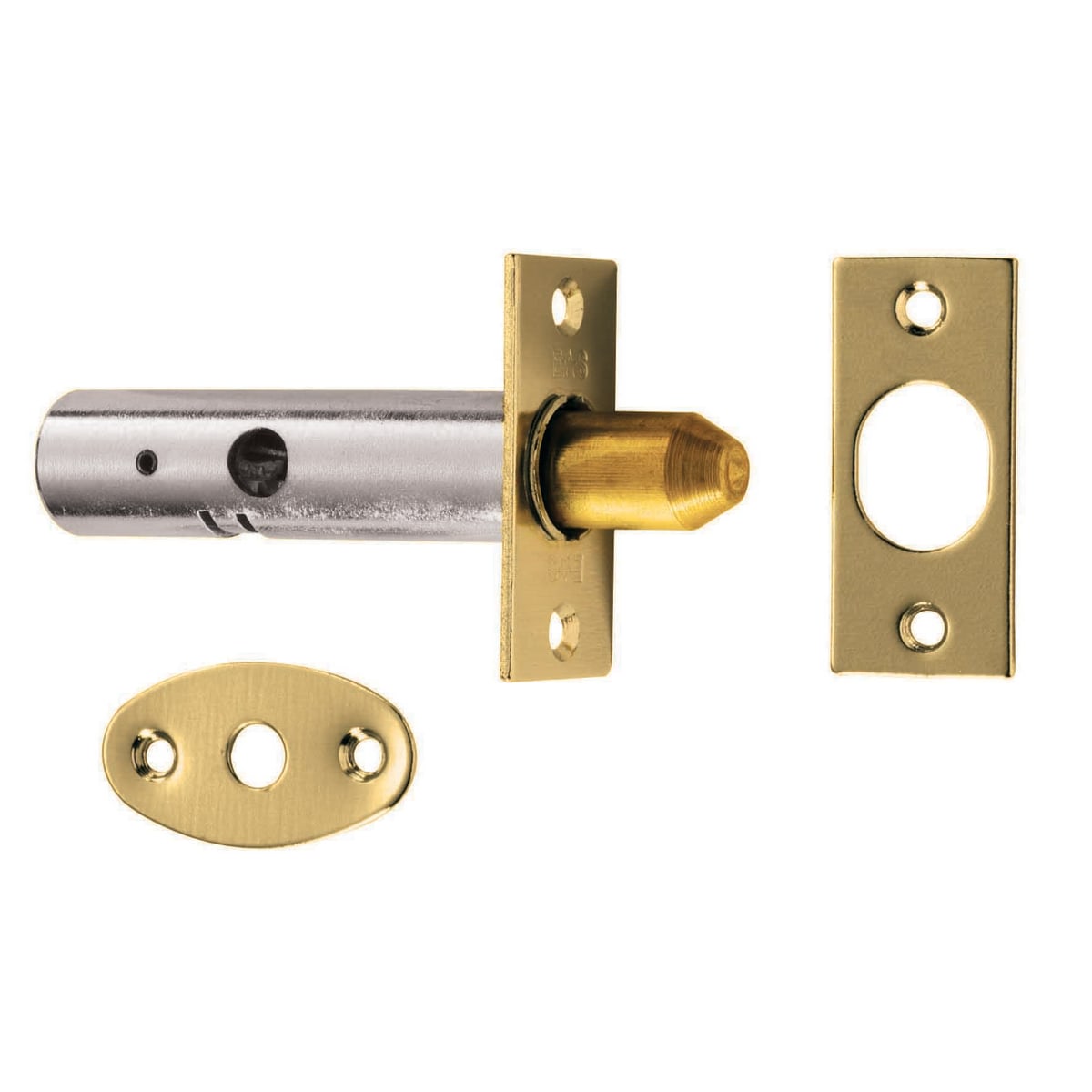 Carlisle Brass Door Security Bolt 60 x 32mm (L x Dia) Electro Brassed provides high level of security. It is also called rack bolt. The bolt is fixed inside the door edge and can be locked as well as unlocked using a separate splinted key or with a fixed splinted turn. The product has an internal saw tooth rack mechanism into which the splinted key is inserted.