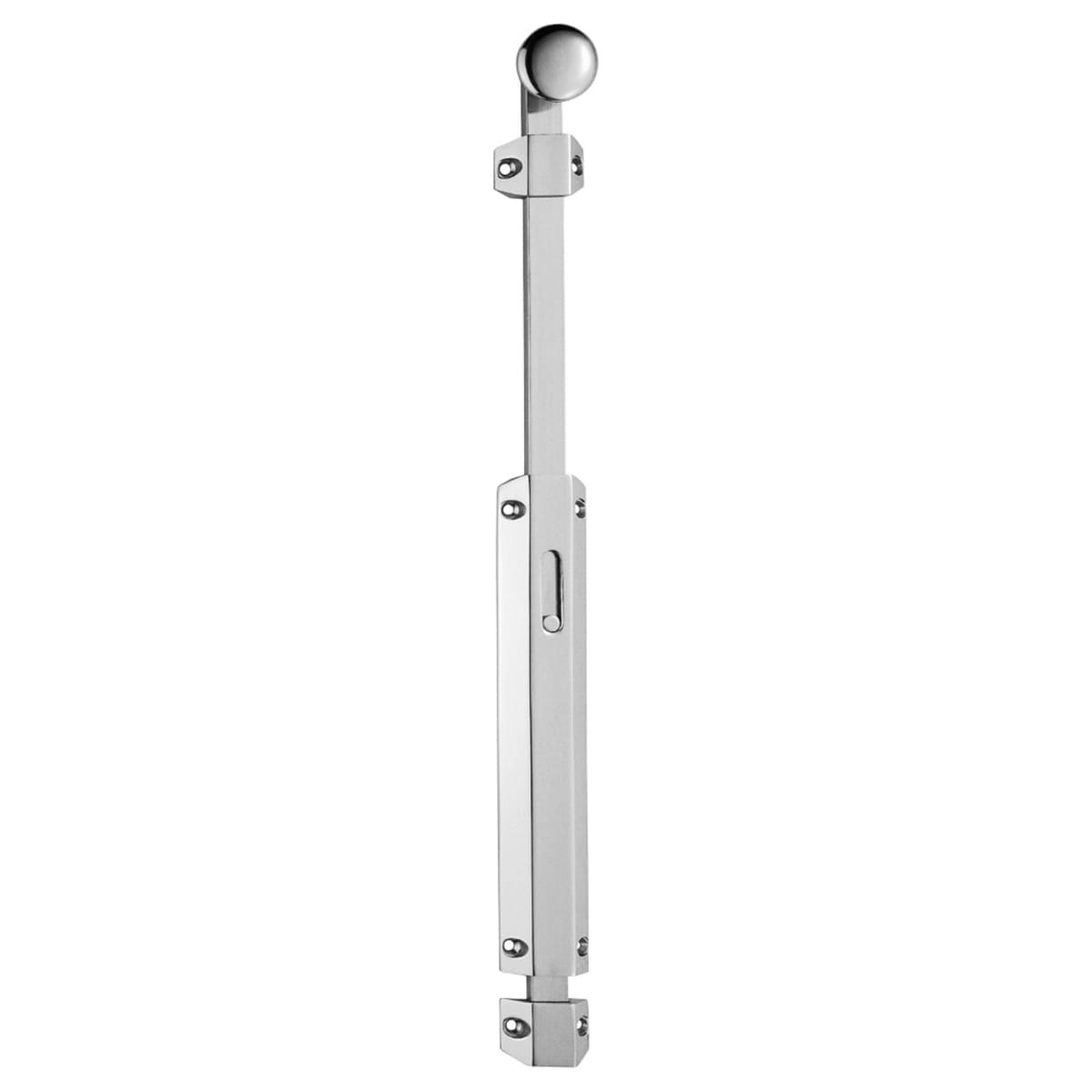 Carlisle Brass Extended Surface Bolt 355 x 36mm (L x W) Satin Chrome is specifically designed to hold the doors together. Manufactured from high quality forged brass that provides strength and hardness to the product. Consists of 150mm extended bolt, spring mechanism and integral ball that provides positive location of the bolt when closed. Designed with the selection of three strikes for use with inward and outward opening doors.