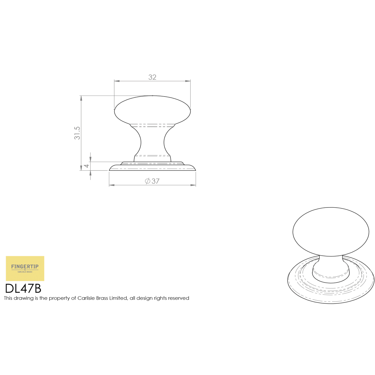 Carlisle Brass Fingertip Cupboard Knob measuring 32mm (Dia) is a smooth styled victorian cabinet knob which sits on a tiered rose that gives an elegant look to the texture. It comes in a polished chrome plated finish on a solid brass material which is comfortable to hold and is easy to maintain. This heavyweight style cabinet knob can be used with or without separate rose plate which is suitable for use in cabinet and cupboard, doors and drawers. The product is supplied with a loose rose that can be used or discarded. It provides a concealed rear bolt through fitting, for a modern secure fixing. The knob measures 37mm rose in diameter with projection of 31mm. It is also available in different sizes and finishes to suit various styles in kitchen and living spaces. The Fingertip brand provides contemporary and traditional ranges of cabinet furniture in a wide variety of finishes that utilises materials such as crystal, pewter and porcelain in their designs.