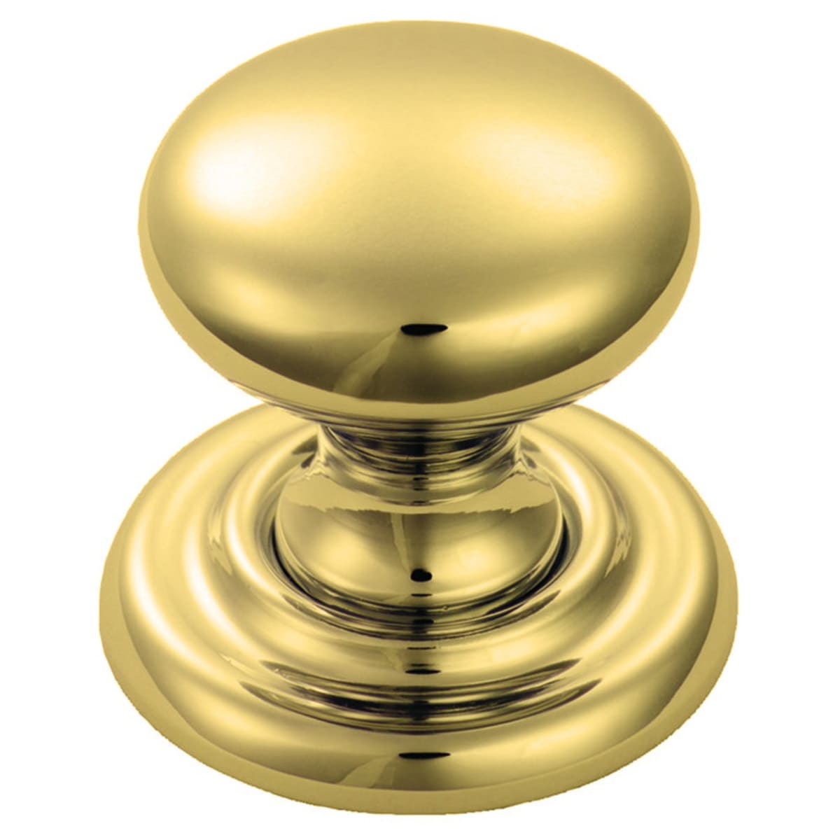 Carlisle Brass Fingertip Victorian Knob 38mm (Dia) Polished Brass is a contemporary design, manufactured from solid brass. It is a classic Victorian style round mushroom shape knob upon a large raised round rose back plate. The knob comes with loose rose of diameter 48mm with a projection of 42mm. The product is suitable with cupboard and cabinet doors. Supplied with M4 bolt fixings for easier installation.