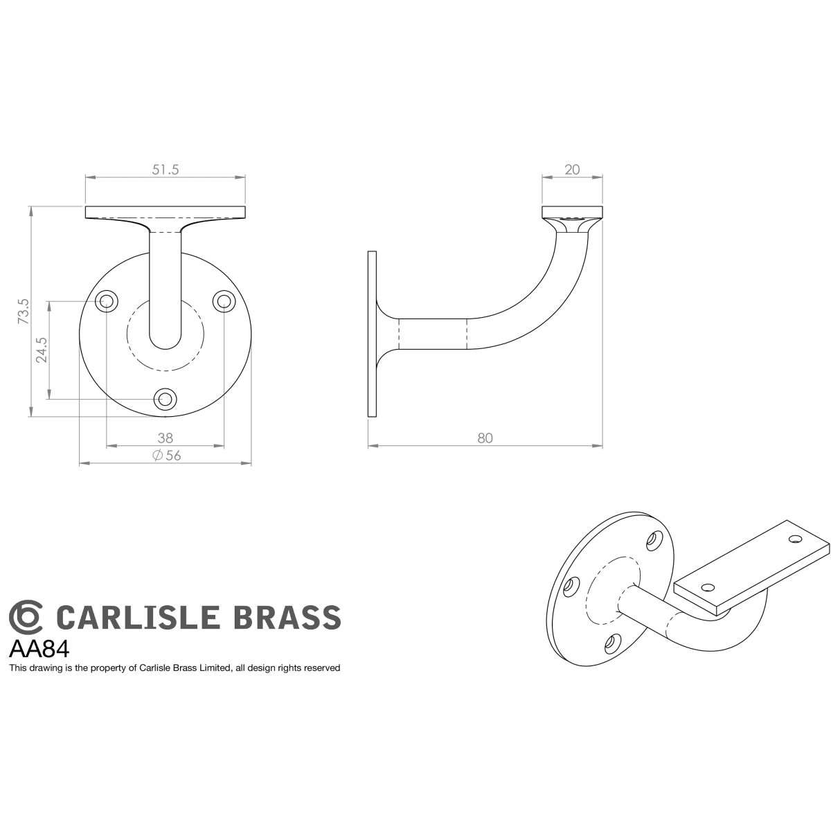 IDCBAA84PB Ironmongery > Handrail Brackets & Kits > Handrail Brackets > Carlisle Brass Heavyweight Handrail Bracket 64mm Polished Brass
