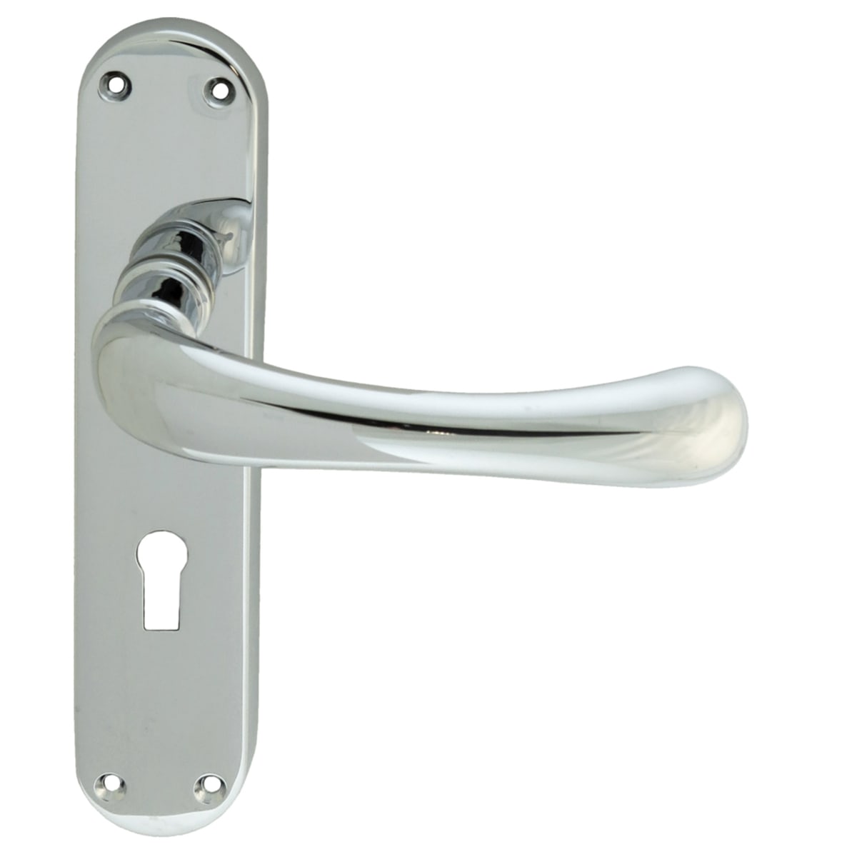Carlisle Brass Ibra Door Lever on Lock Backplate Polished Chrome has been designed for use on internal and external doors. The backplate is a plain and shaped with rounded ends. It features a smooth rounded handle which narrows in the middle for a comfortable grip with good ergonomics. Ideal for both domestic and commercial use. Manufactured from solid brass. For use with a standard 47.5mm centre sash lock. Can also be used with fire doors.