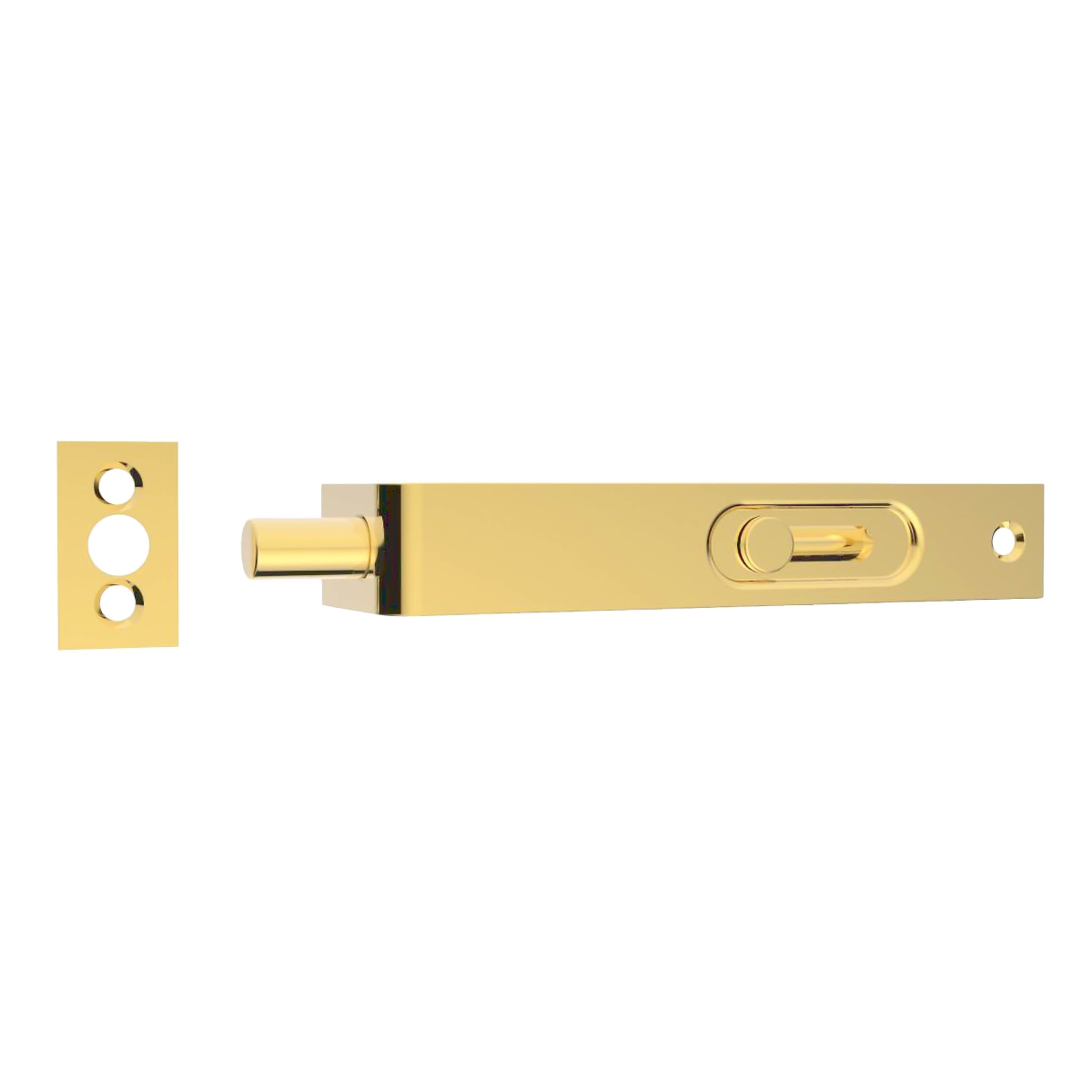 Carlisle Brass Sunk Slide Flush Bolt 101 x 17mm (H x W) Polished Brass is a door security that allow doors to be securely held open or closed. It is suitable for French and double sided doors. The product can be fixed to the face of the door and is operated by sliding the shoot using the small knob. The flush bolt is supplied with flat keep plate and fixings. The matching dust excluding sockets are available separately for wood or concrete floors, as an easy clean open socket.