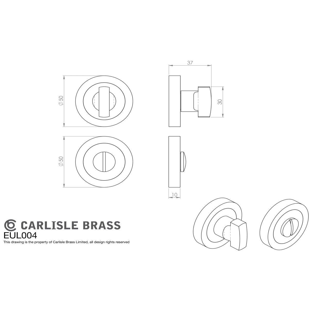 IDCEUL04AB Door Hardware & Closers > Door Furniture > Bathroom Turns > Carlisle Brass Thumbturn & Release 50mm Antique Brass