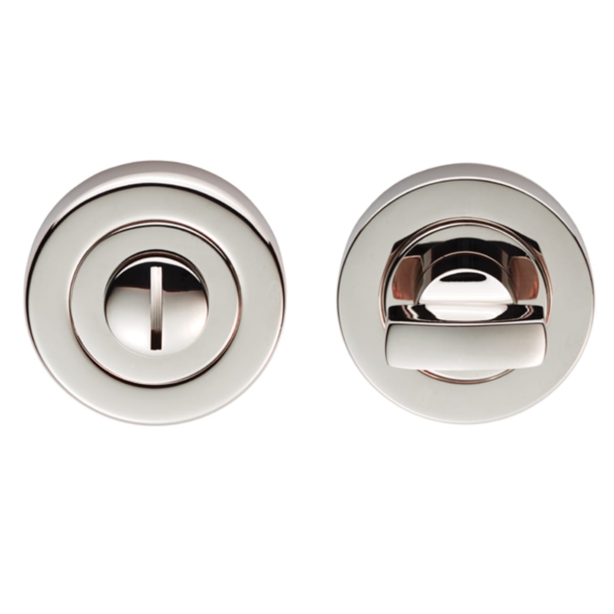 Thumbturn and release on a screw on rose, concealed fix. Designed to match the new finishes collection range of designer handles on round roses.