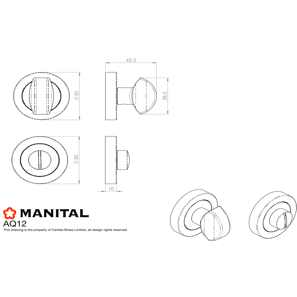 Carlisle Brass Narrow Thumbturn and release with a solid brass threaded rose cover which is 50mm diameter and included concealed fixings. Intended for use where a privacy facility is required in conjunction with a bathroom lock or dead bolt that compliments any of the Italian lever on rose designer ranges in polished chrome.