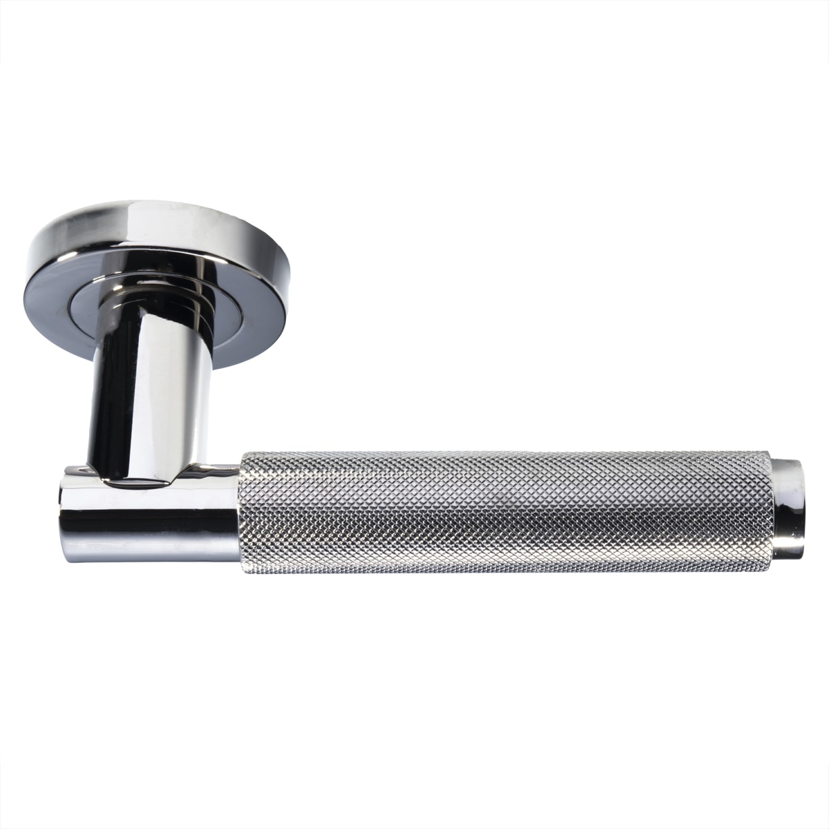 Lever on a concealed fix 2 part screw on round rose. A stylish knurled for grip round bar lever. Comes with a 25 year mechanical guarantee and is Fire door rated. Suitable for domestic and commercial use.