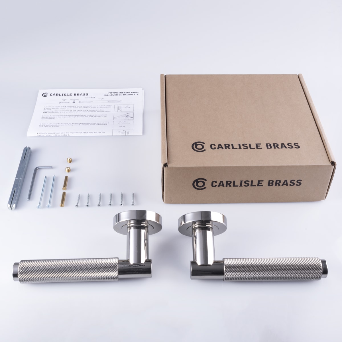 Product Name Carlisle Brass Varese Knurled Lever on Rose Polished Nickel