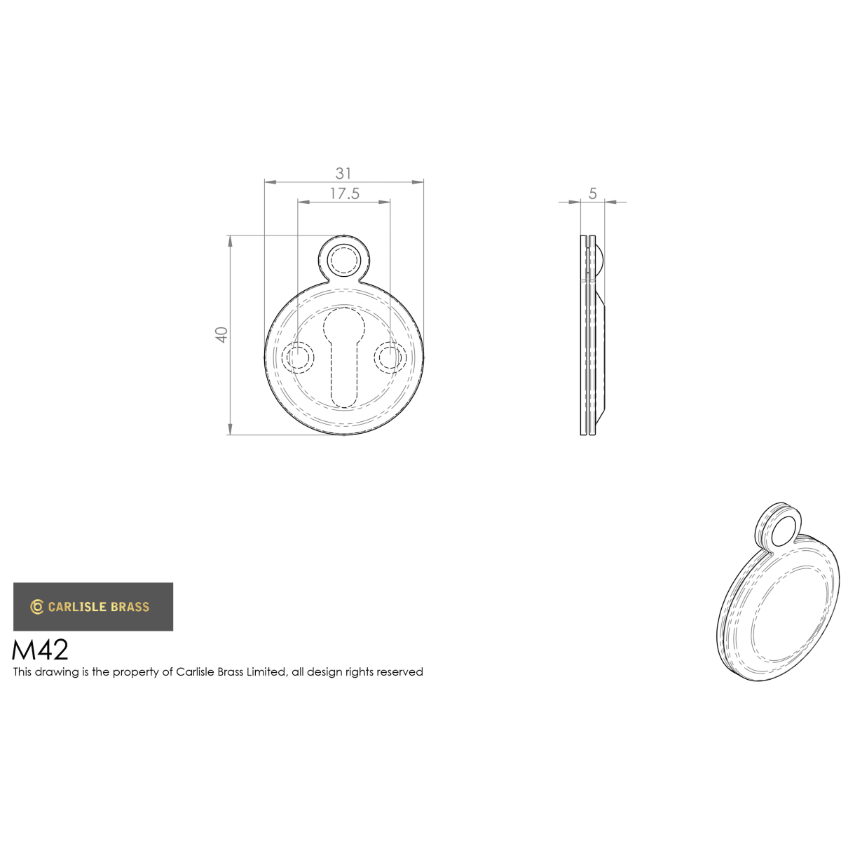Carlisle Brass Victorian Covered Keyhole Escutcheon 5 x 31mm (T x Dia) Polished Chrome is manufactured from solid brass material. It is a flat piece of metal for protection and often ornamentation, around a keyhole.