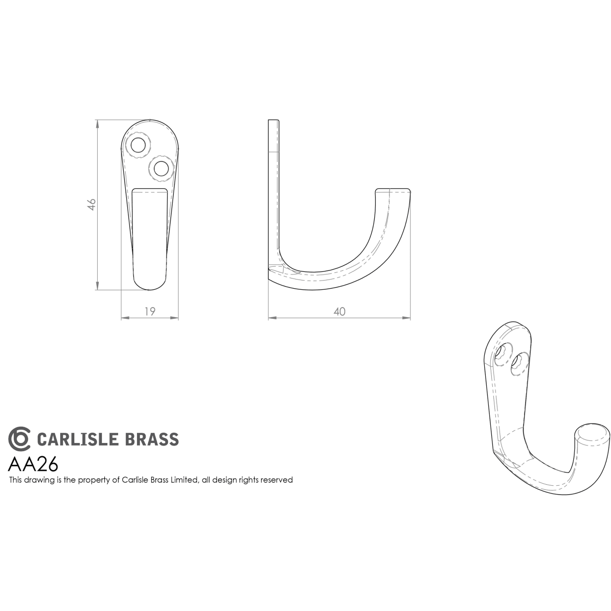 Carlisle Brass Victorian Robe Hook 46 x 16 x 39mm (H x W x D) Satin Chrome is manufactured from solid brass making the product versatile. one piece robe hook a single short arm which is fitted to a slim base plate, for holding single item below the oval fixing plate. The 2 screw holes ensure a secure fixing that makes the installation quick and easy. This is suitable to use on bathrooms, cloakrooms and bedrooms, a practical solution when fitted to the back of the door.