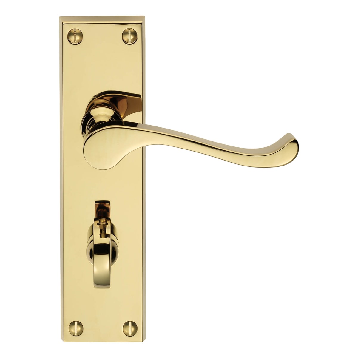 Carlisle Brass Victorian Scroll Bathroom Contract Lever Polished Brass 155 x 40 x 10mm (H x W x T) Polished Brass is a classic style upturned handle on a rectangular backplate. The lever height measures about 58mm that operates with mortice bathroom locks, latch and bolt. Manufactured from high quality brass with a plain and simple minimalist style.