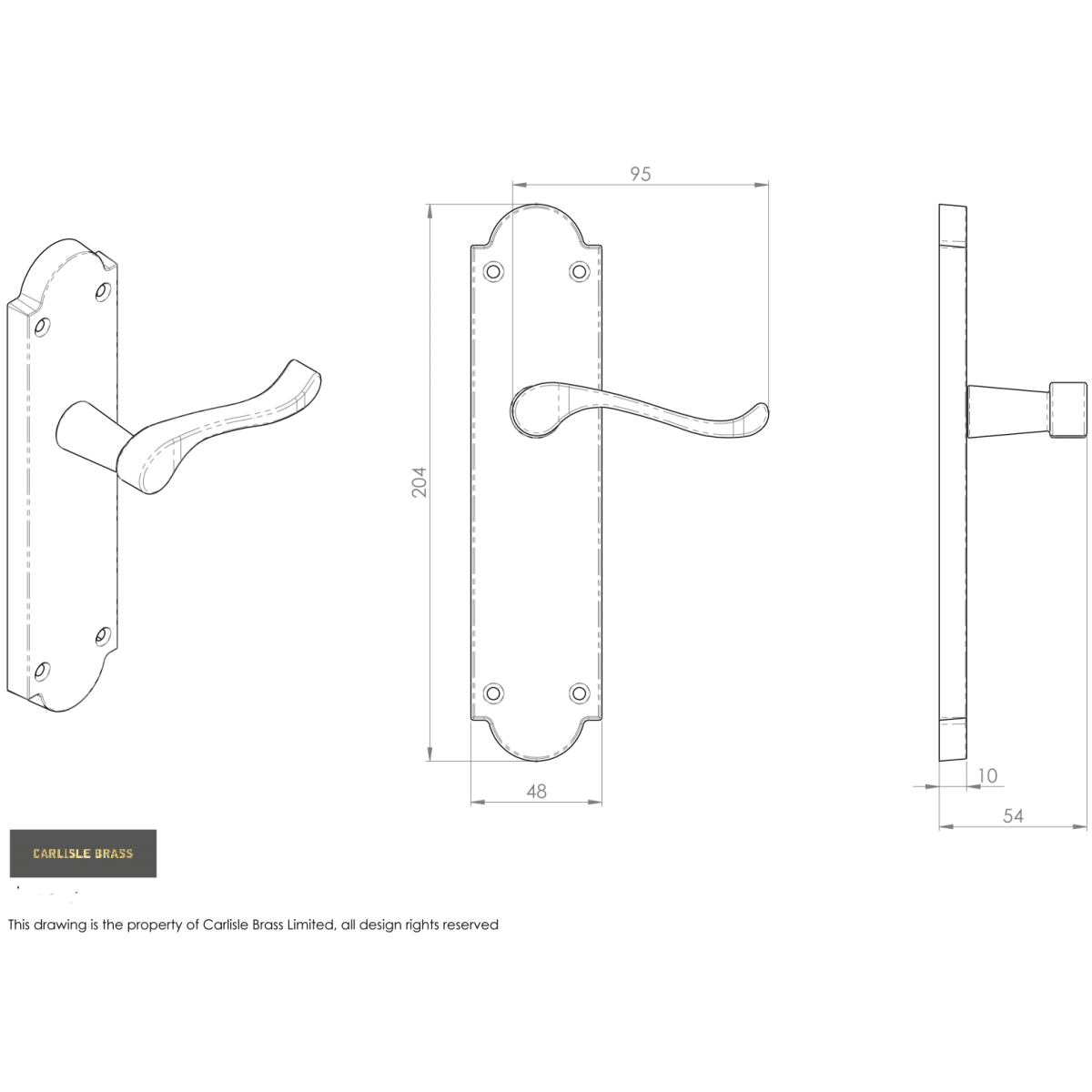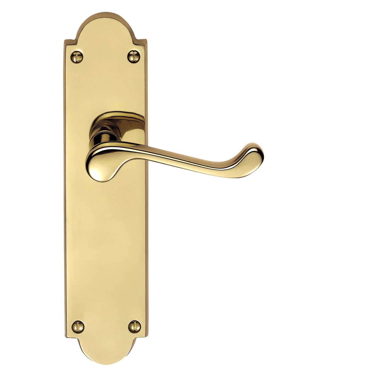 Carlisle Brass Victorian Scroll Lever on Latch Backplate 203 x 51mm (H x W) Polished Brass has four face fixing points for an easy fitting. It is the straight lever on a rectangular backplate with end inserts top and bottom emphasizing the satin chrome finish. The Victorian style upturned handle is designed for easy and comfortable grip.
