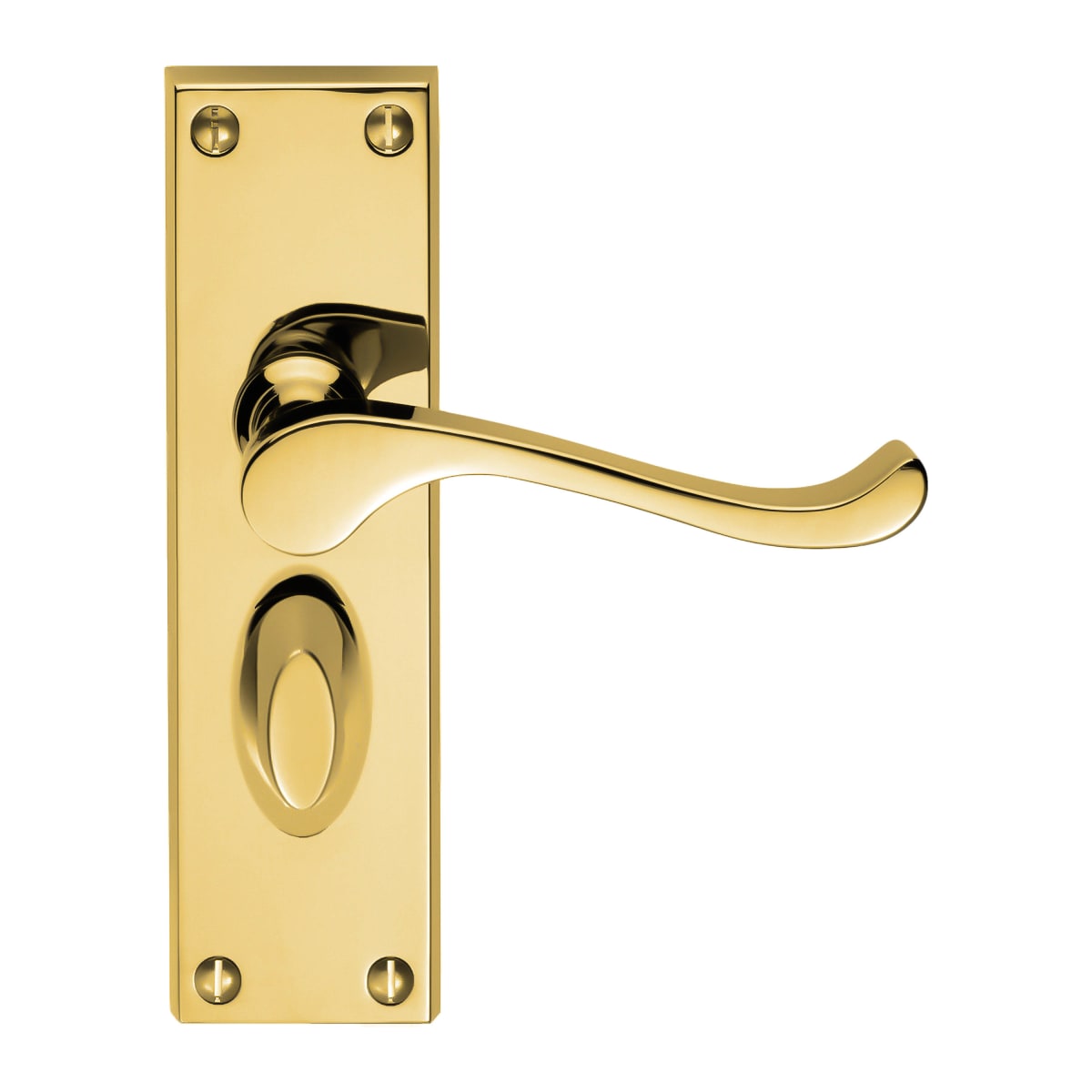 IDCBDL55WC Door Hardware & Closers > Door Furniture > Door Handles > Carlisle Brass Victorian Scroll Lever Short Privacy Backplate Polished Brass