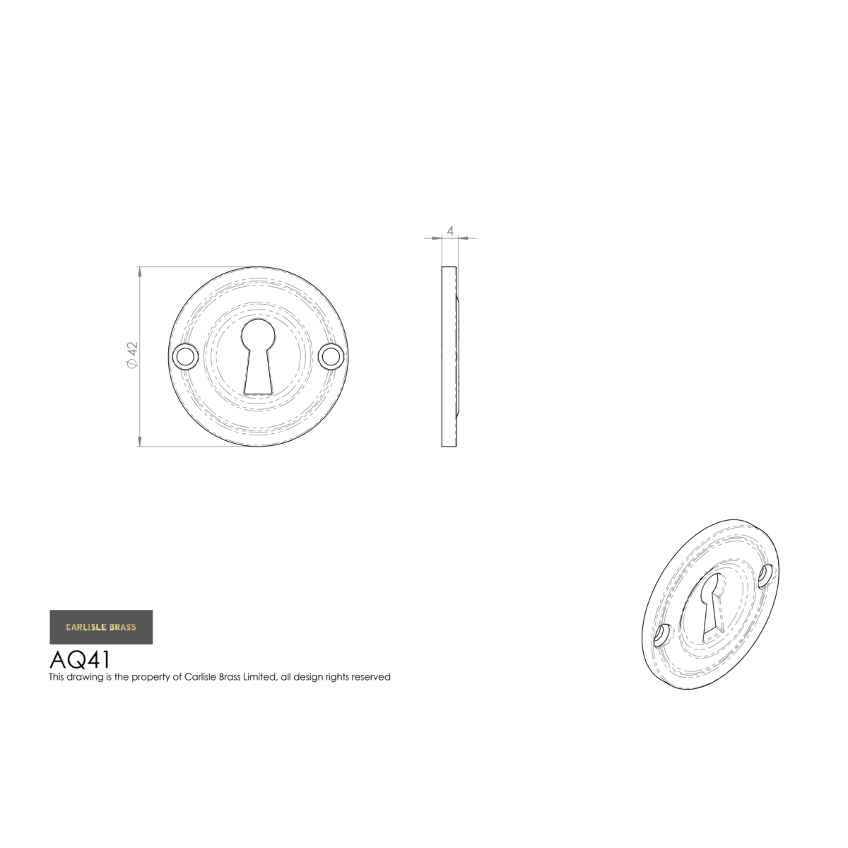 Victorian polished brass standard key way escutcheon. Face fixed with raised ridge style. 42mm diameter to 4mm thick raised rim.