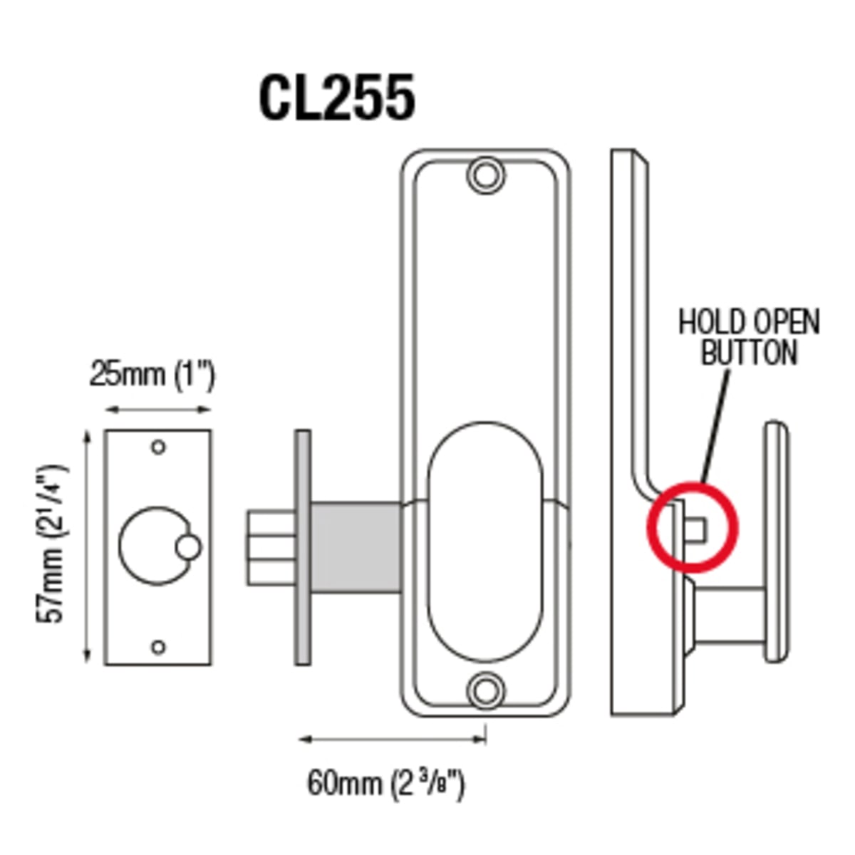 Codelocks Key Override Mortice Digital Lock 141 x 41 x 85mm (H x W x D) Stainless Steel is a lock that has a 14-digit pin tumbler system. It is provided with a dual function holdback facility that is on or off. The digital lock is suitable for internal use with deadlock tubular latch that has a backset measurement of 60mm. Also suitable for use on timber or metal doors with a thickness of 33mm to 55mm. The product is assessed for use on 30 to 60 minute timber fire doors.