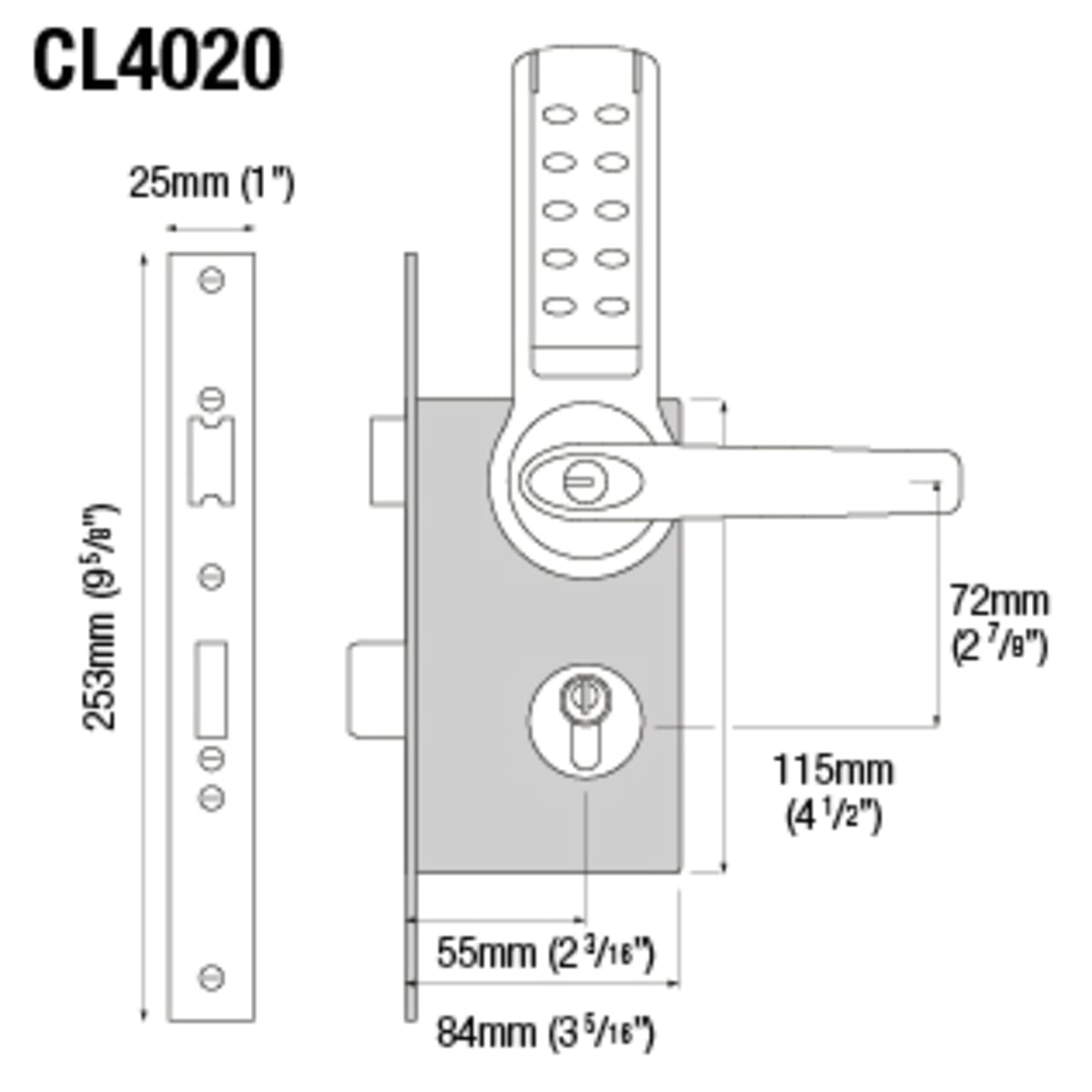 CL4020SS Medium duty stylish and contemporary design electronic lock with medium duty mortice lock, double cylinder with 2 keys and anti panic safety function, lever handle. Fully programmable on the door via the key pad with multiple functions including one time user cods,code free option, connection to an alarm release. Up to 80 user codes with over 200,000 operations per 4 x n cells supplied with the unit. Brushed stainless steel PVD finish suitable for use on internal and external doors. Suitable for use on 30min and 60min doors when fitted with an additional fire kit pack, tested in accordance to BSEN1634-1 2008.