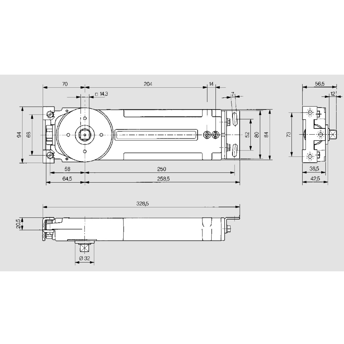 Dorma RTS85 Size 3 Non-Hold Open 90 Deg Transom Closer Self Colour to suit doors up to 950mm wide and 110Kg.
