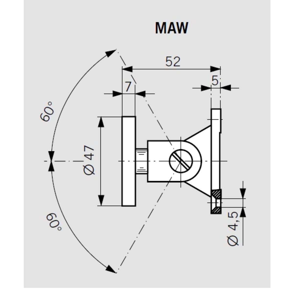 The Dorma MAW swivel receiver plate for angle adjustment. Armature of 47 x 47mm and 52mm in height; base plate measures 55 x 55 mm. Flexibly pivots up to 60° either way. Anchor plate to be used in combination with all Dormakba electromagnets EM 500.