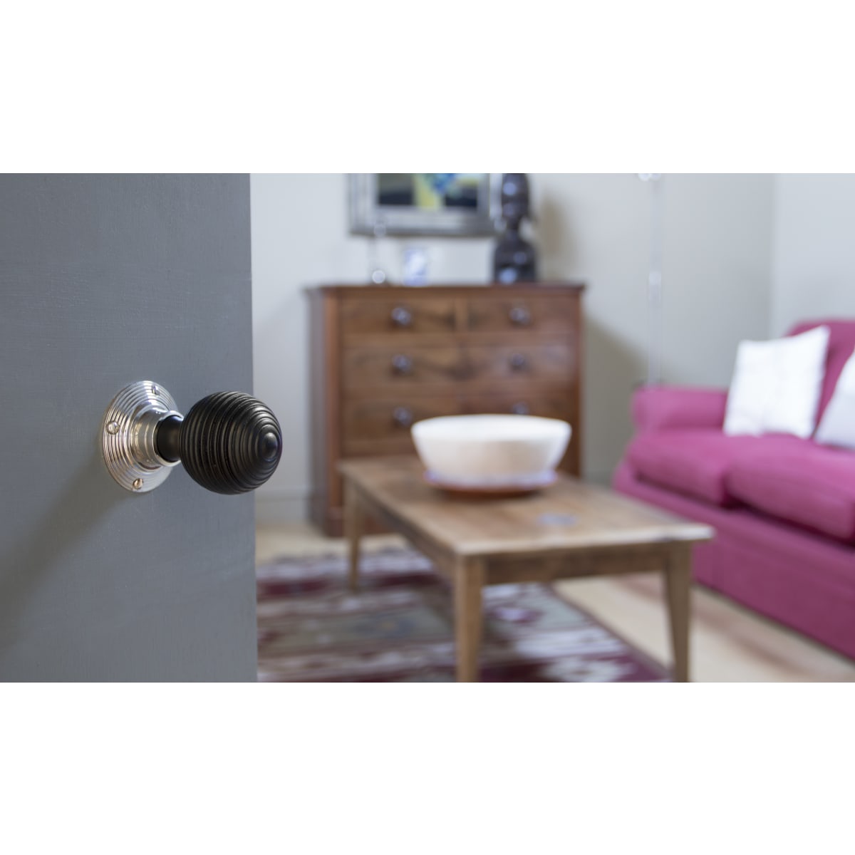 Door Hardware & Closers > Door Furniture > Door Knobs > From the Anvil Beehive Mortice/Rim Knob Set Polished Nickel/Ebony