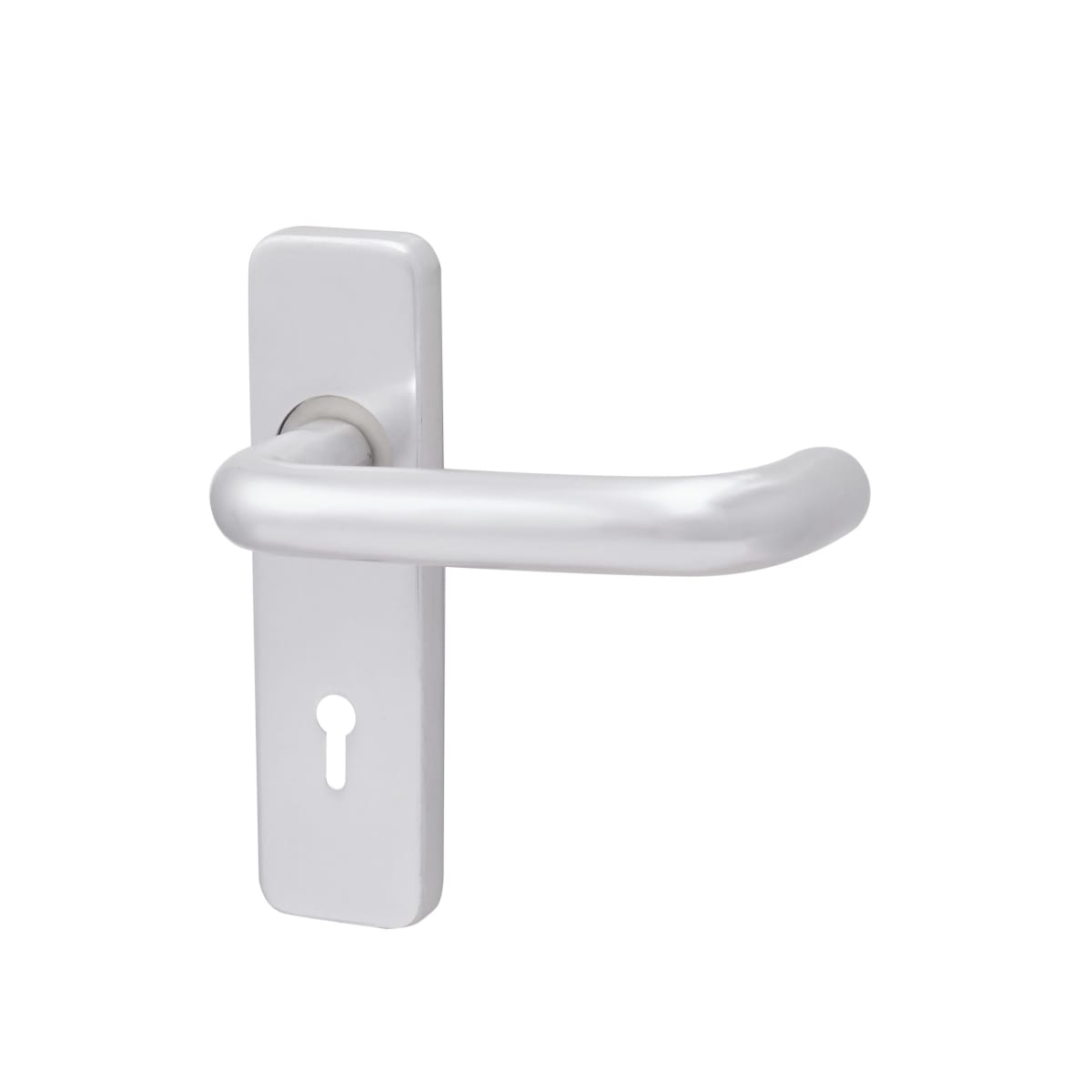 Lever Lock Door Handle 19mm Dia Satin Anodised Aluminium, is a smooth curved handle which gives an ergonomic grip. This handle comes with pre-drilled fixing holes. It has a curved edge rectangular backplate with solid curved sweeping lever.