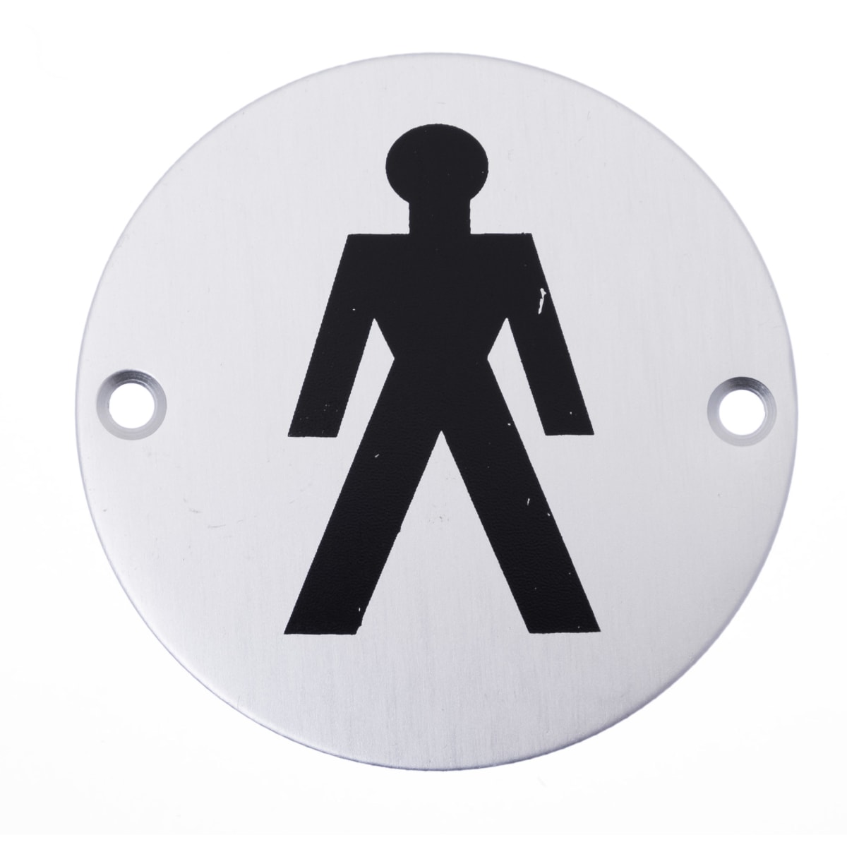 75mm circular Aluminium face fix Male Symbol. Supplied with Fixings. EN1634 FD 30, 60 and 240 minutes fire rated