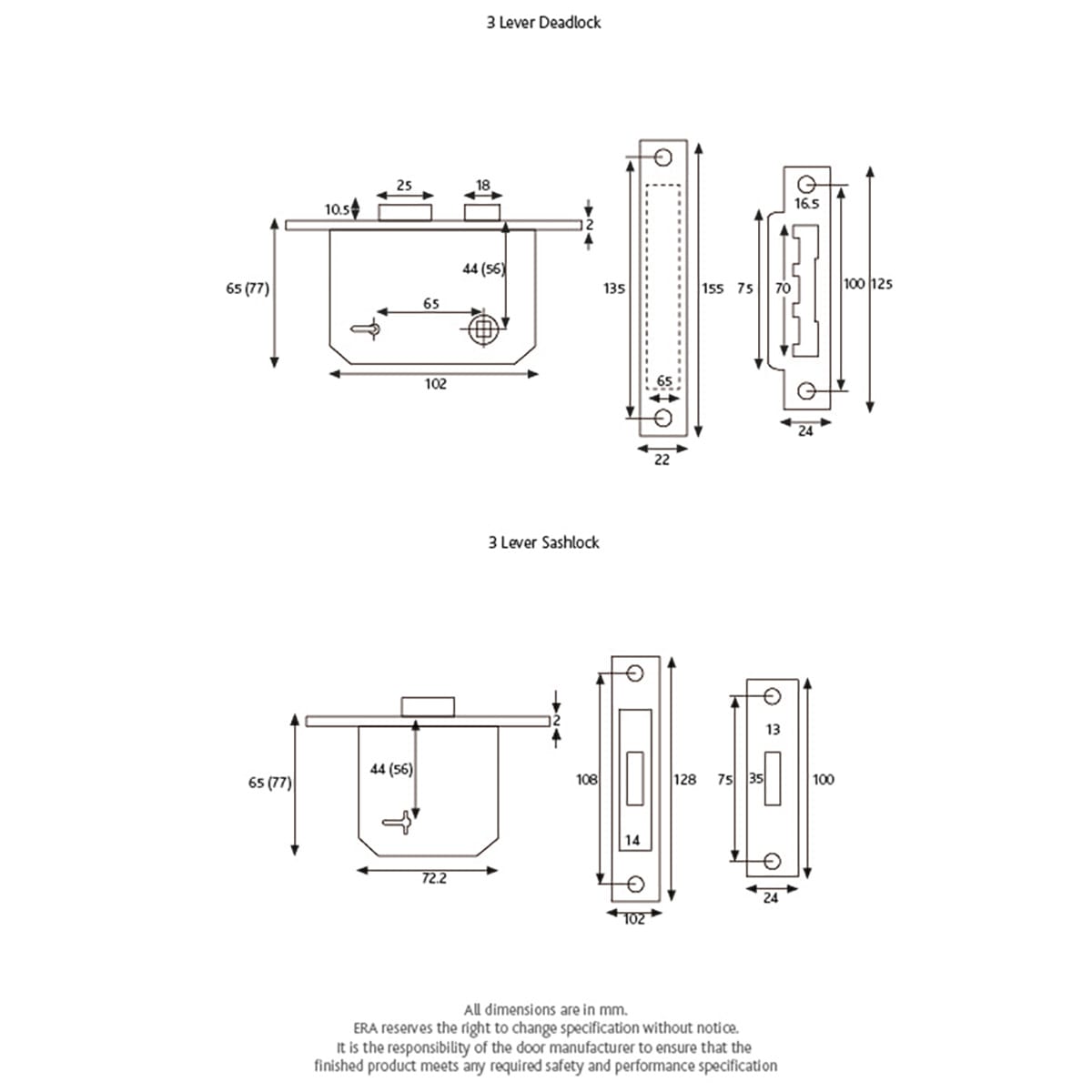 Product Name ERA 3 Lever Deadlock 2 1/2" (64mm) Chrome