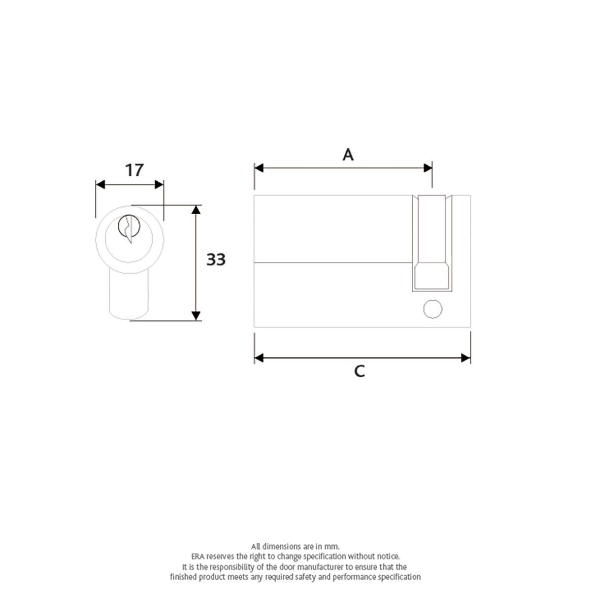 ERA 30/10 5 Pin Euro Profile Single Door Cylinder 40mm Satin ensures opening from one side and no access to the other side. Designed with a 5-pin bumping resistant that is manufactured from solid brass with 30 x 10mm inner length (A and B) on both sides. Each cylinder is supplied with 3 keys and offers 100,000 key variations for added security. The cylinders are perfect for euro cylinder operated mortice locks and multi-point locks.