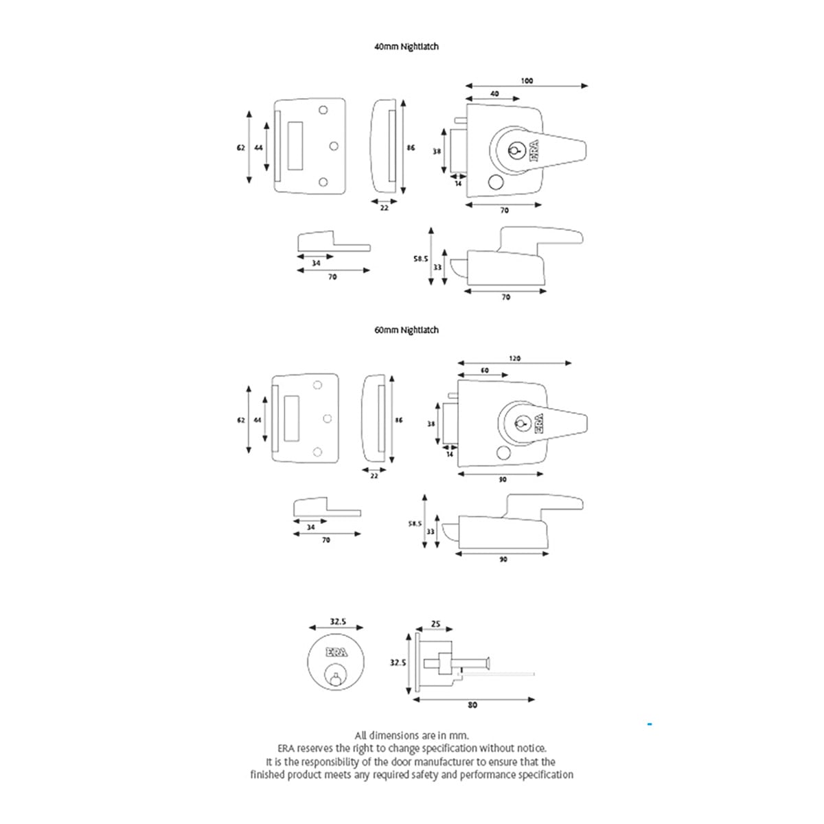 ERA Double Locking Nightlatch door lock provides additional security to replace most existing front door locks. Automatic deadlocking prevents the bolt being retracted by a credit card. The main bolt is automatically deadlocked into the striker, when the door is closed, preventing it from being retracted. To secure the lock against forced entry the inside, the handle can be deadlocked by an anti clockwise turn of the key from the inside. With the use of snib feature the bolt can be held in the withdrawn position. The bolt cannot be reversed. Non handed design enabling both left and right handed operation, Supplied with 3 cut keys that can be keyed to pass or master keyed